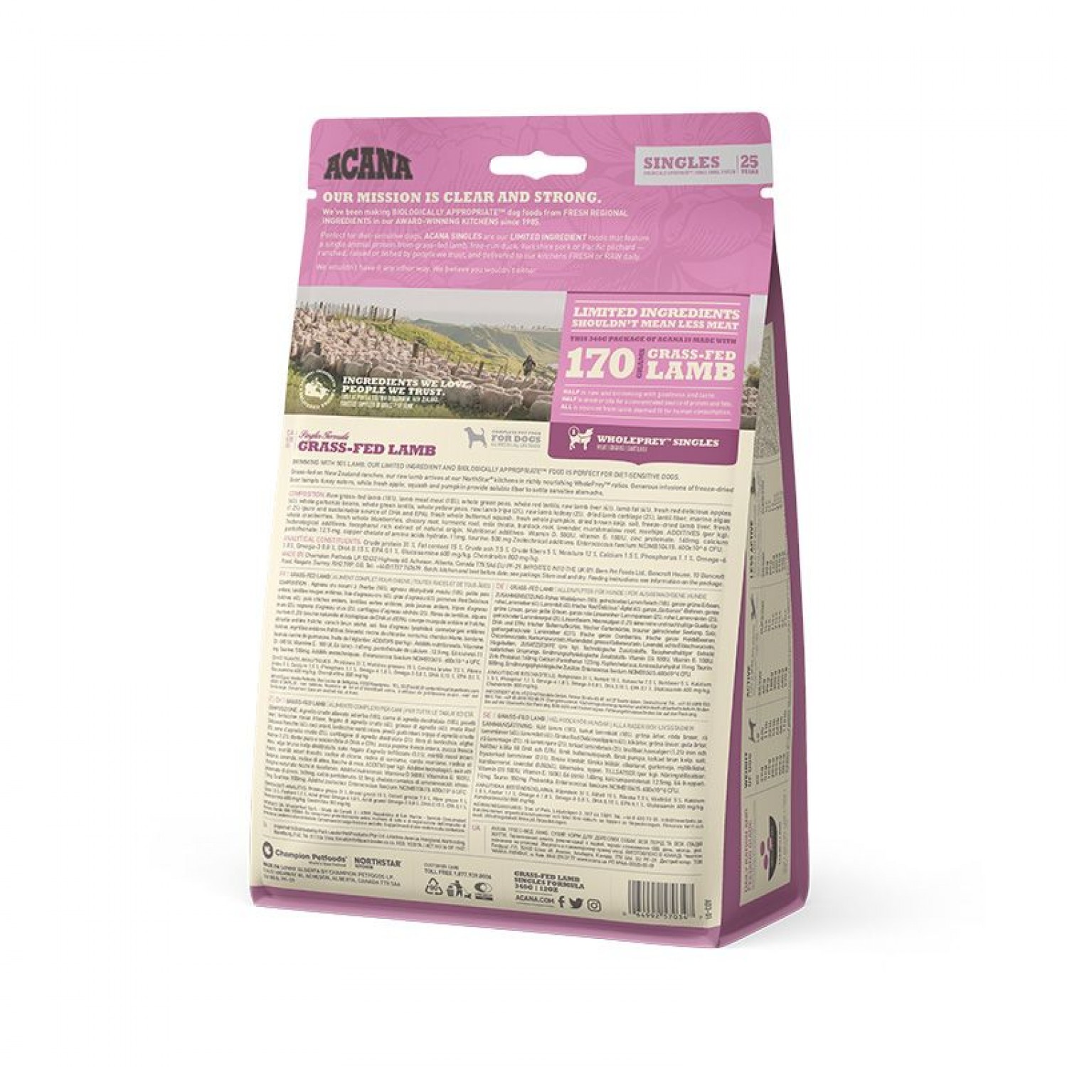 ACANA Grass-Fed Lamb - це раціон з обмеженою кількістю інгредієнтів, де м’ясо ягняти (50%) являється єдиним джерелом легкоперетравних протеїнів - це ідеально підходить для всіх собак з чутливим травленням.