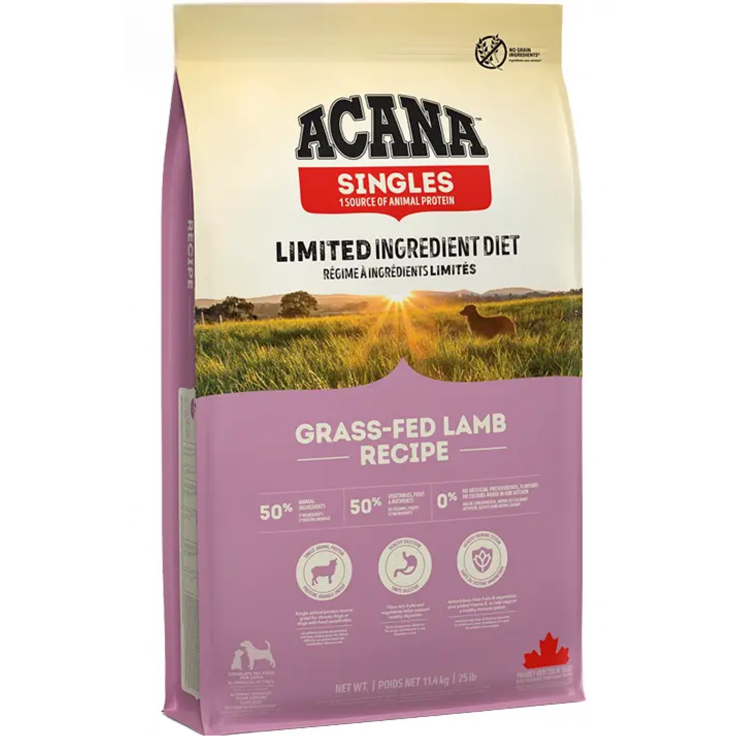 ACANA Grass-Fed Lamb - це раціон з обмеженою кількістю інгредієнтів, де м’ясо ягняти (50%) являється єдиним джерелом легкоперетравних протеїнів – це ідеально підходить для всіх собак з чутливим травленням. Обмежена кількість інгредієнтів зовсім не означає, що м'яса в кормі менше.