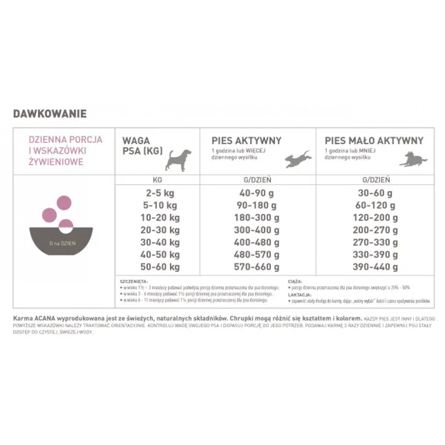 Раціон ACANA Grass-Fed Lamb створений відповідно до рівнів поживності встановлених FEDIAF для собак всіх стадій життя включаючи цуценят великих порід в період зростання.