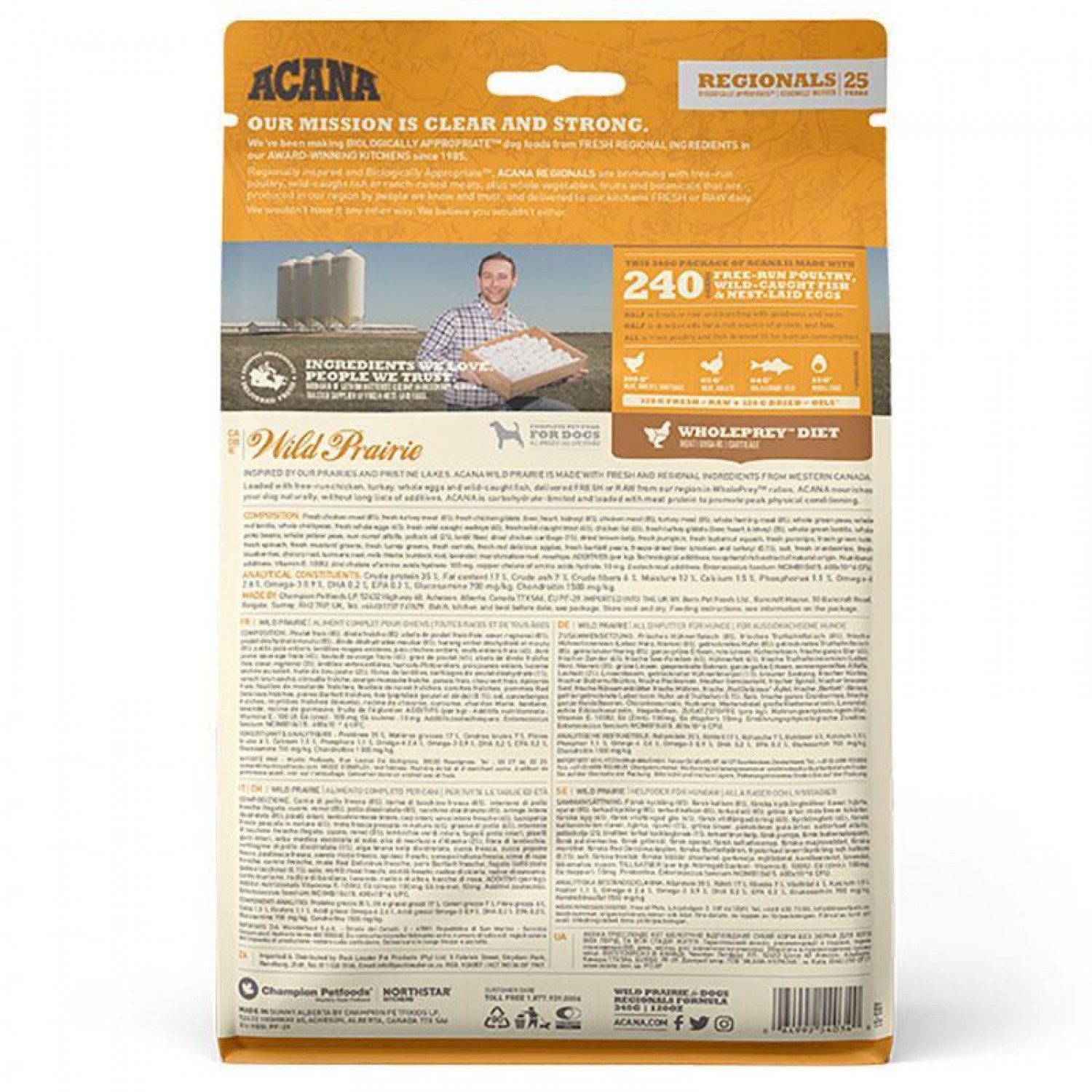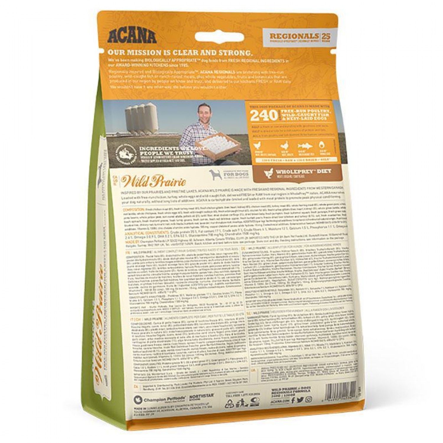 Раціон ACANA Wild Prairie Dog Recipe створений у відповідності до рівнів поживності встановлених FEDIAF для собак всіх стадій життя, за виключенням цуценят німецьких догів до 14 тижнів.