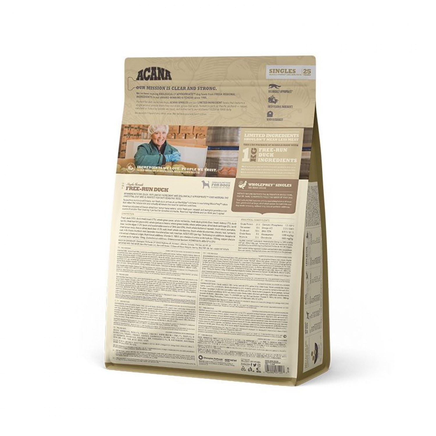 ACANA Free-Run Duck - це раціон з обмеженою кількістю інгредієнтів, де м’ясо качки (50%) являється єдиним джерелом легкоперетравних протеїнів - це ідеально підходить для всіх собак з чутливим травленням.