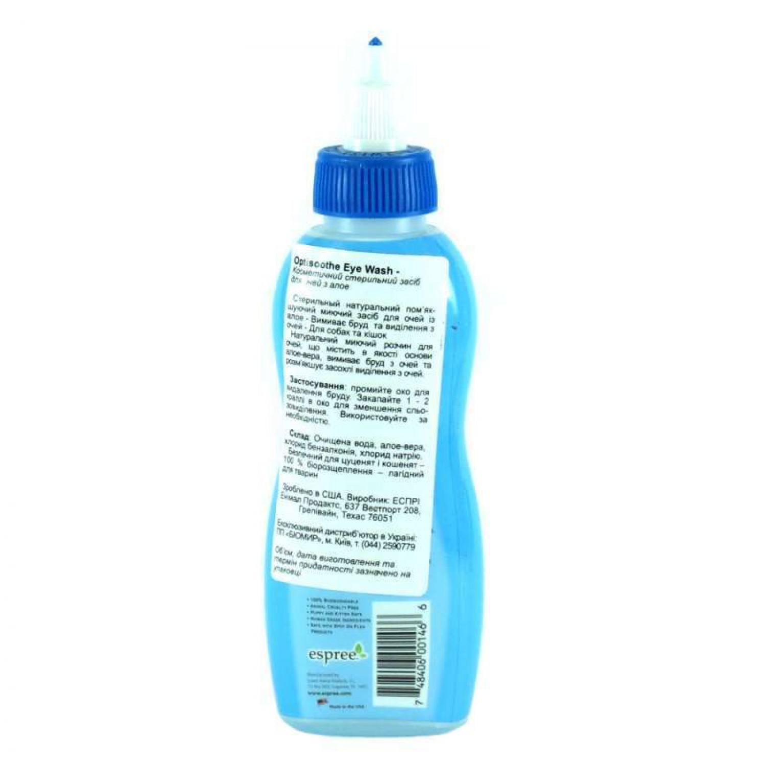 Espree Aloe OptiSoothe - пом'якшуючий миючий засіб-ополіскувач на основі алое вера для очей цуценят і кошенят, а також для дорослих собак і котів.