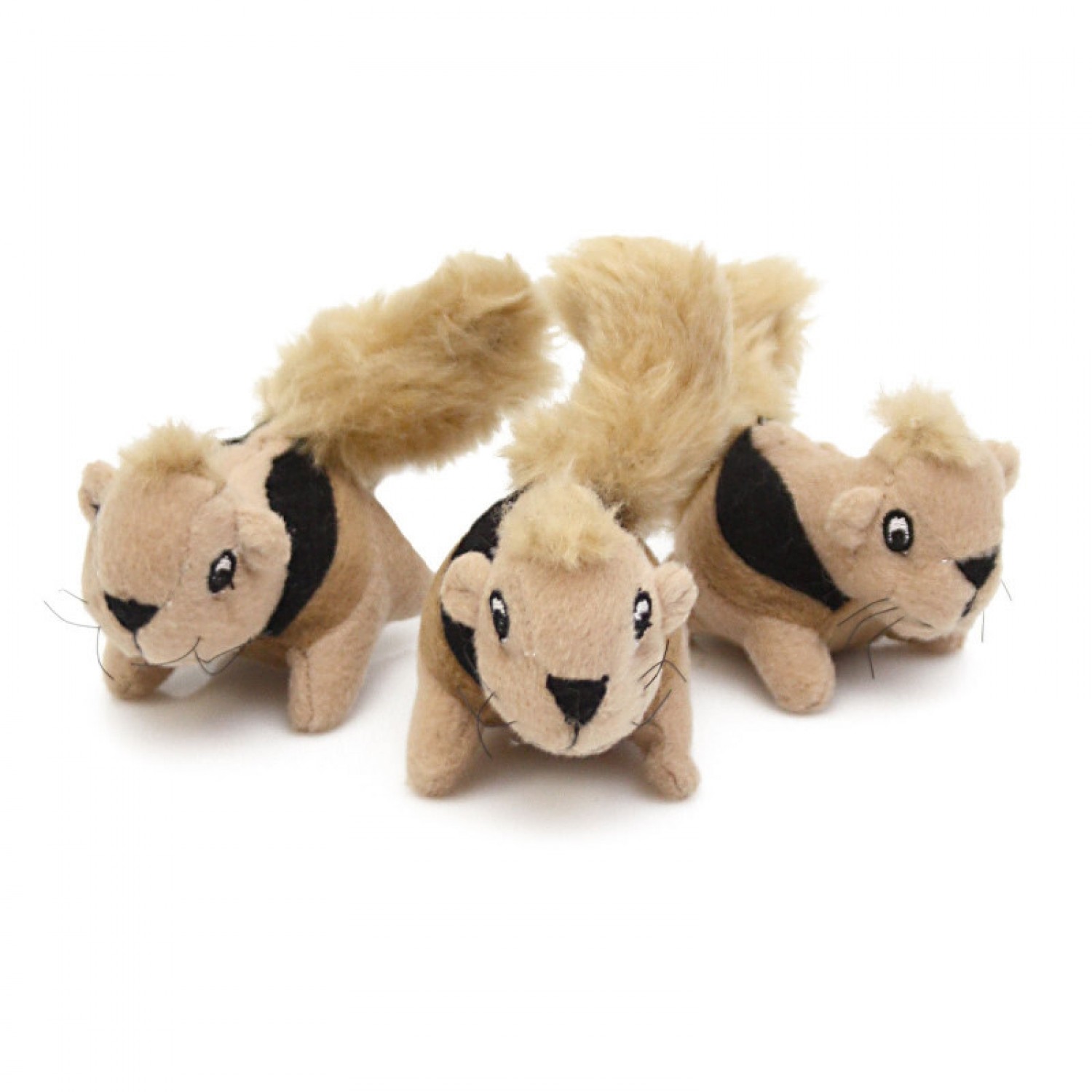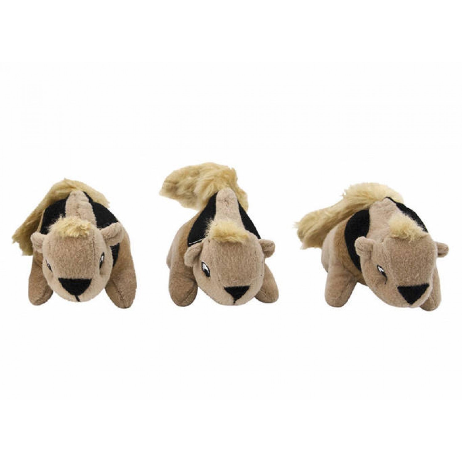 Грати з цими неймовірними плюшевими білочками-пищалками завжди весело, а ще їх можна сховати в стовбур плюшевого дерева для захоплюючих ігор у схованки. Білочки виготовлені з м'якої тканини, ніжної до чутливих ясен цуценят та старіючих вихованців, але досить міцної, щоб витримати безліч ігрових сеансів. Кожна з трьох білочок містить фірмову непереможну пищалку, яка пищатиме навіть якщо її прокусити.