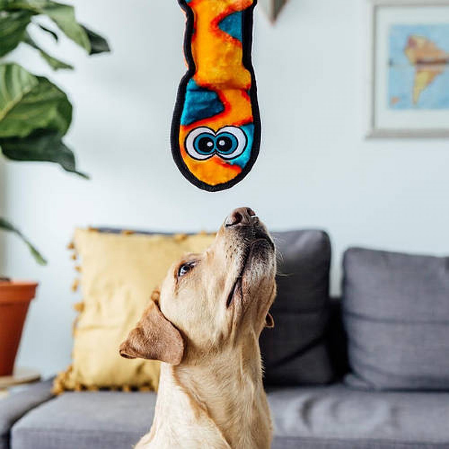 - Без наповнювачів: при створенні цього шаленоокого героя, ми не поклали всередину нічого зайвого - лише улюблену собаками пищалку, від якої всі собаки захоплюються. Ця іграшка без зайвого пуху та наповнювачів, тому собаки можуть тягати змію і тиснути на пищалку потужніше, ми продумали кожну деталь.