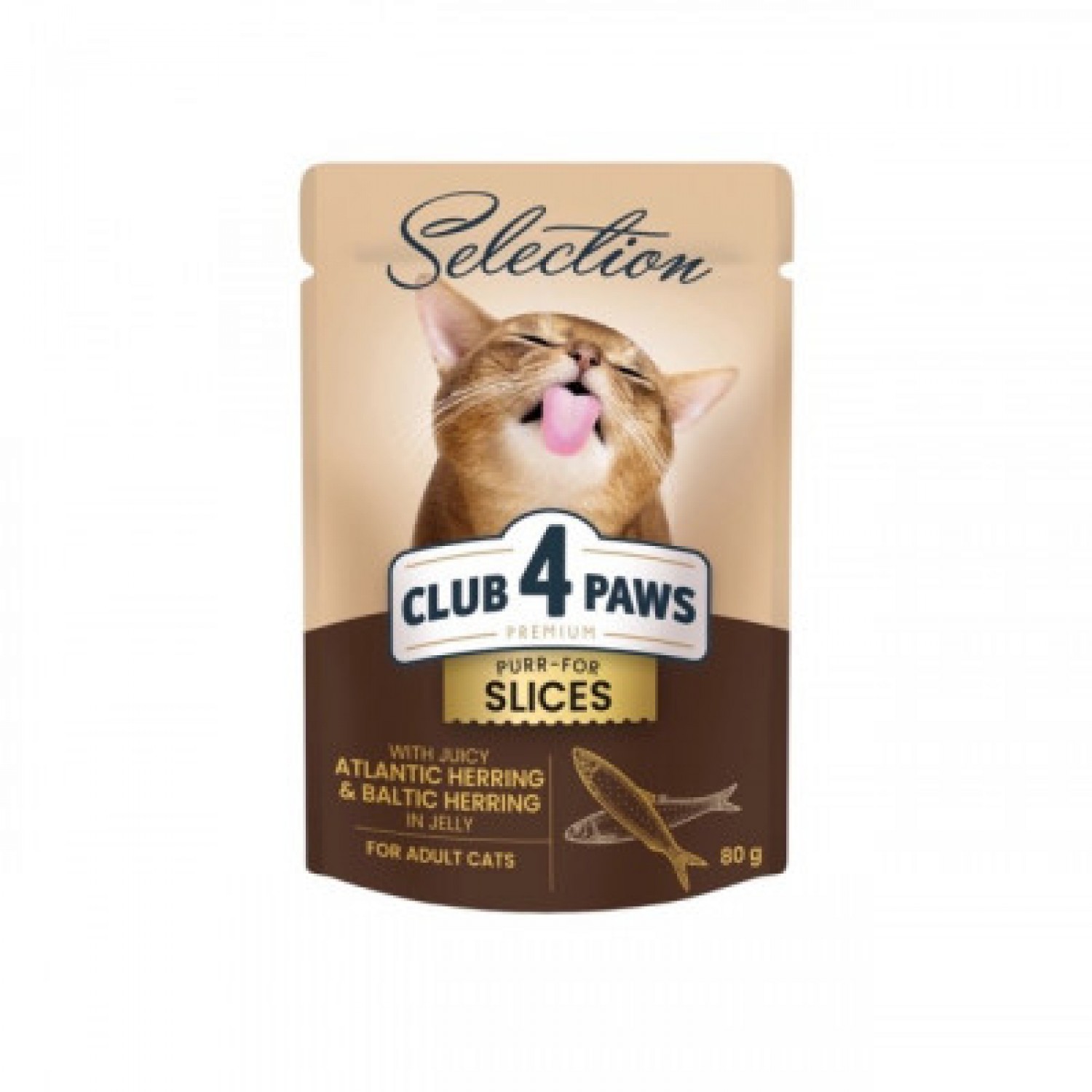 Club 4 Paws Plus Selection Cat Slices вологий корм для котів з оселедцем та салакою в желе.