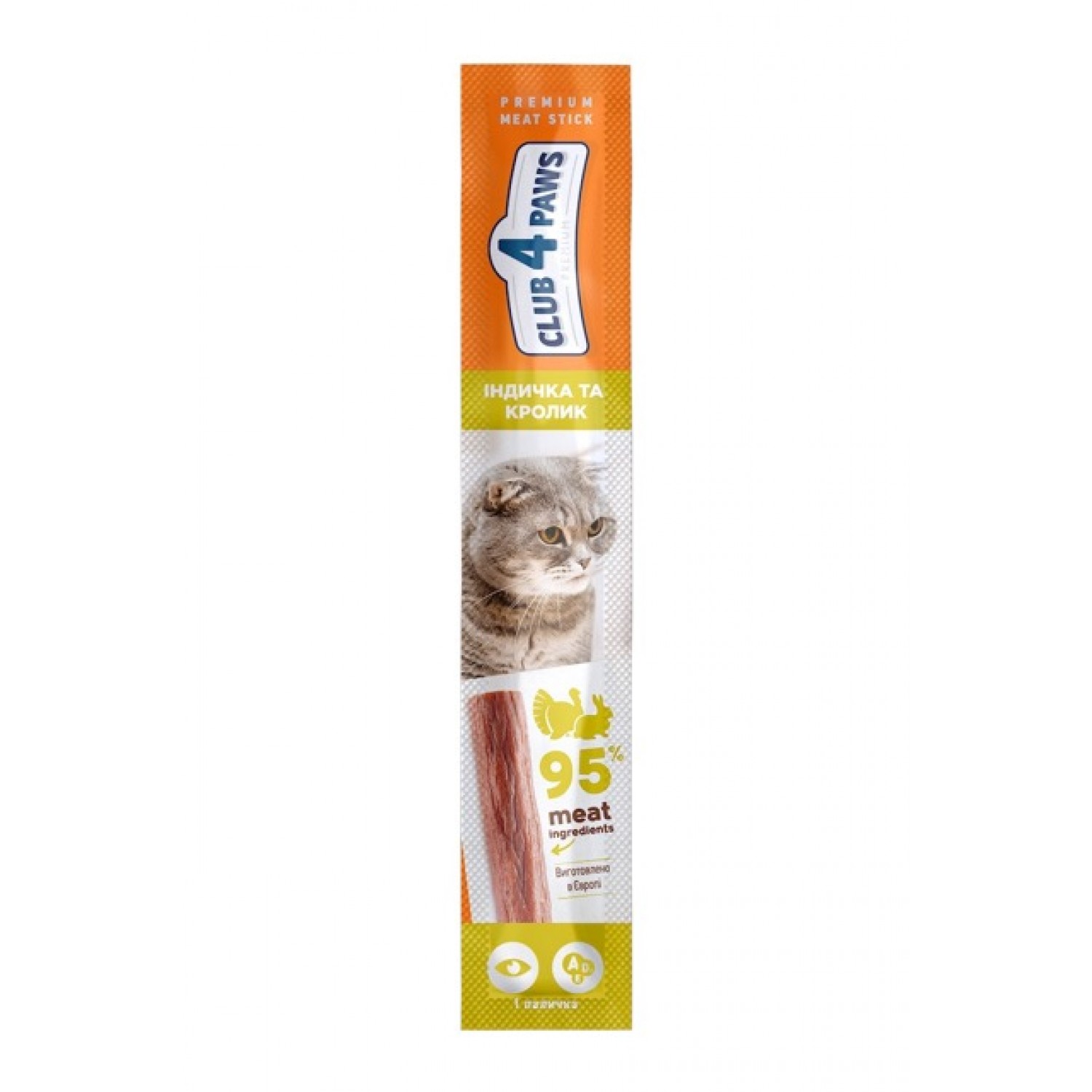 Club 4 Paws Premium м'ясні ласощі для котів з індичкою та кроликом.