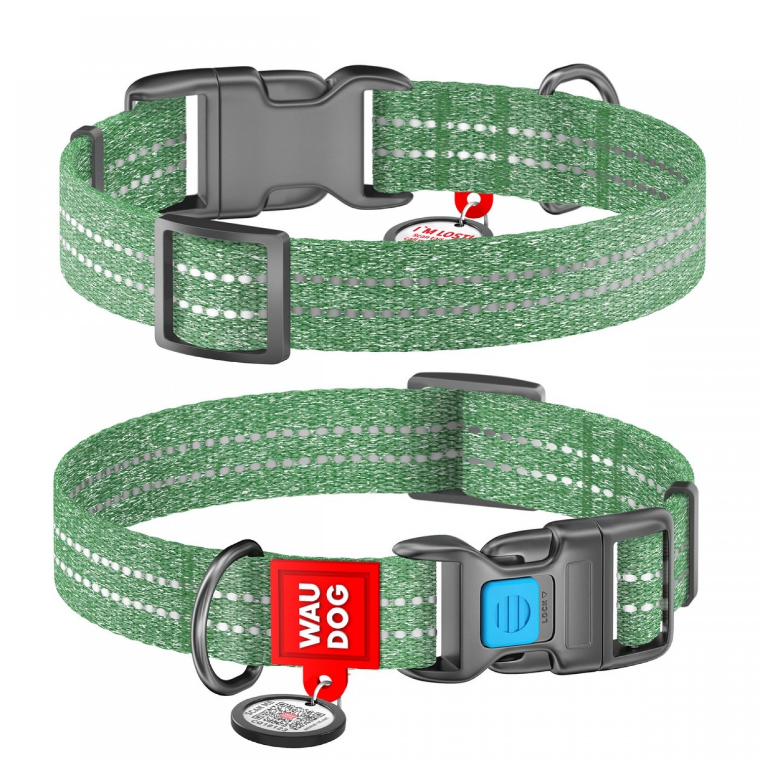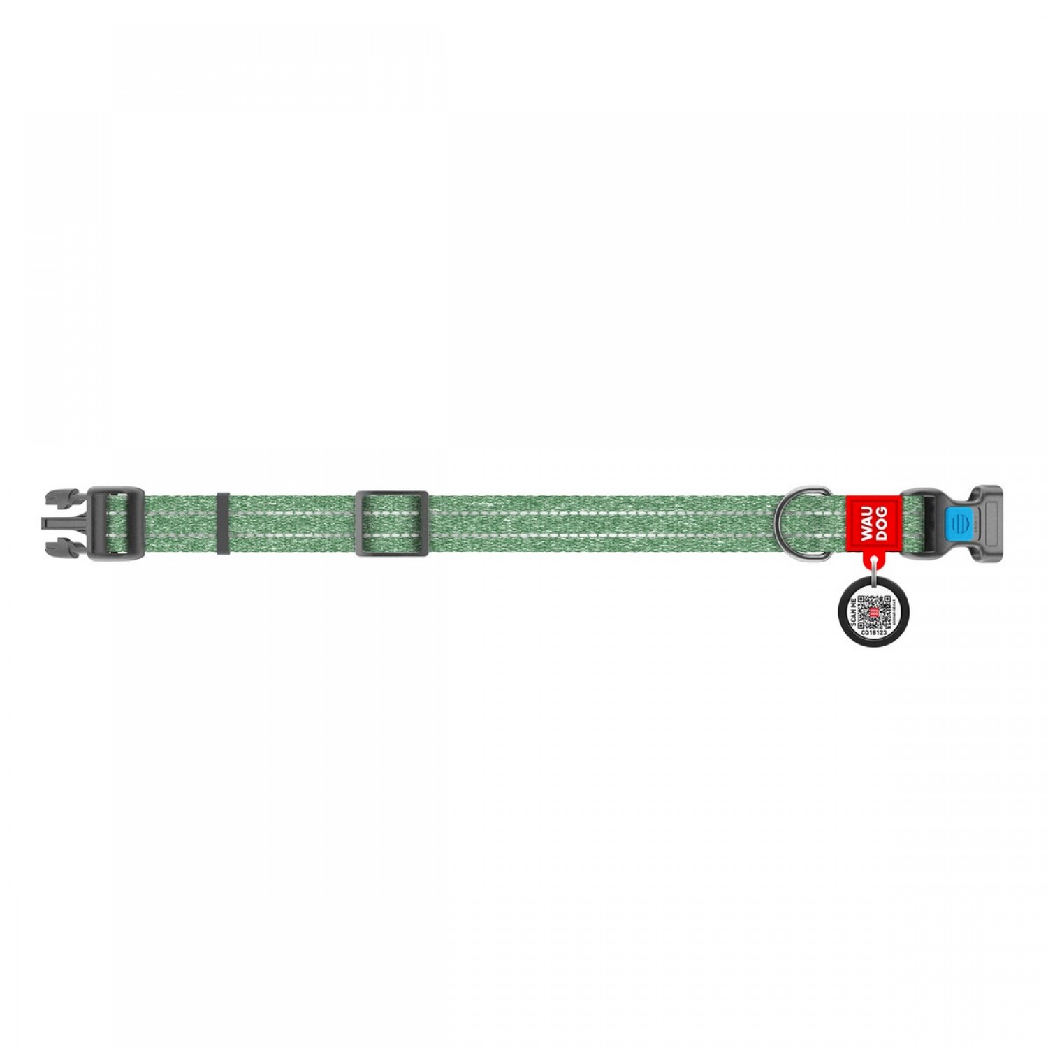 Collar WAUDOG Re-cotton світловідбивний нашийник з QR паспортом для собак (зелений).