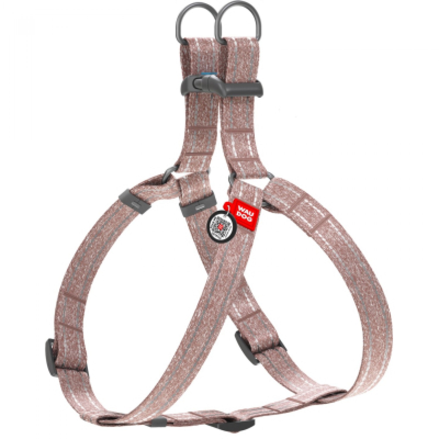 Collar WAUDOG Re-cotton світловідбиваюча шлея з QR паспортом для собак середніх порід (коричнева).