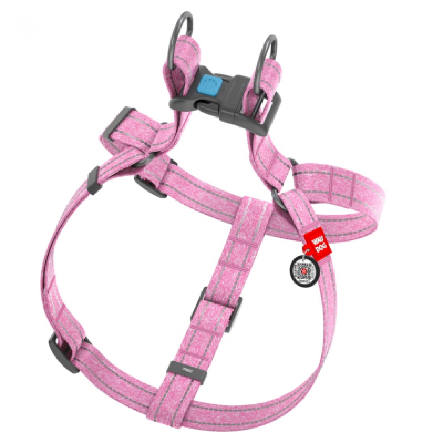 Collar WAUDOG Re-cotton світловідбиваюча шлея з QR паспортом для собак середніх порід (рожева).