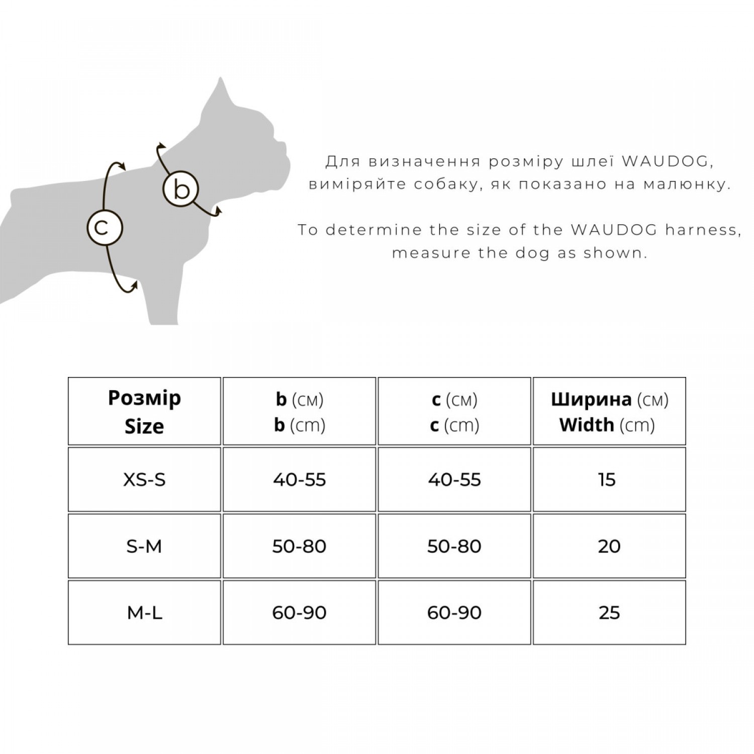 - Для підбору потрібного розміру шлеї необхідно виміряти обхват грудної клітки Вашого собаки за допомогою вимірювальної стрічки.