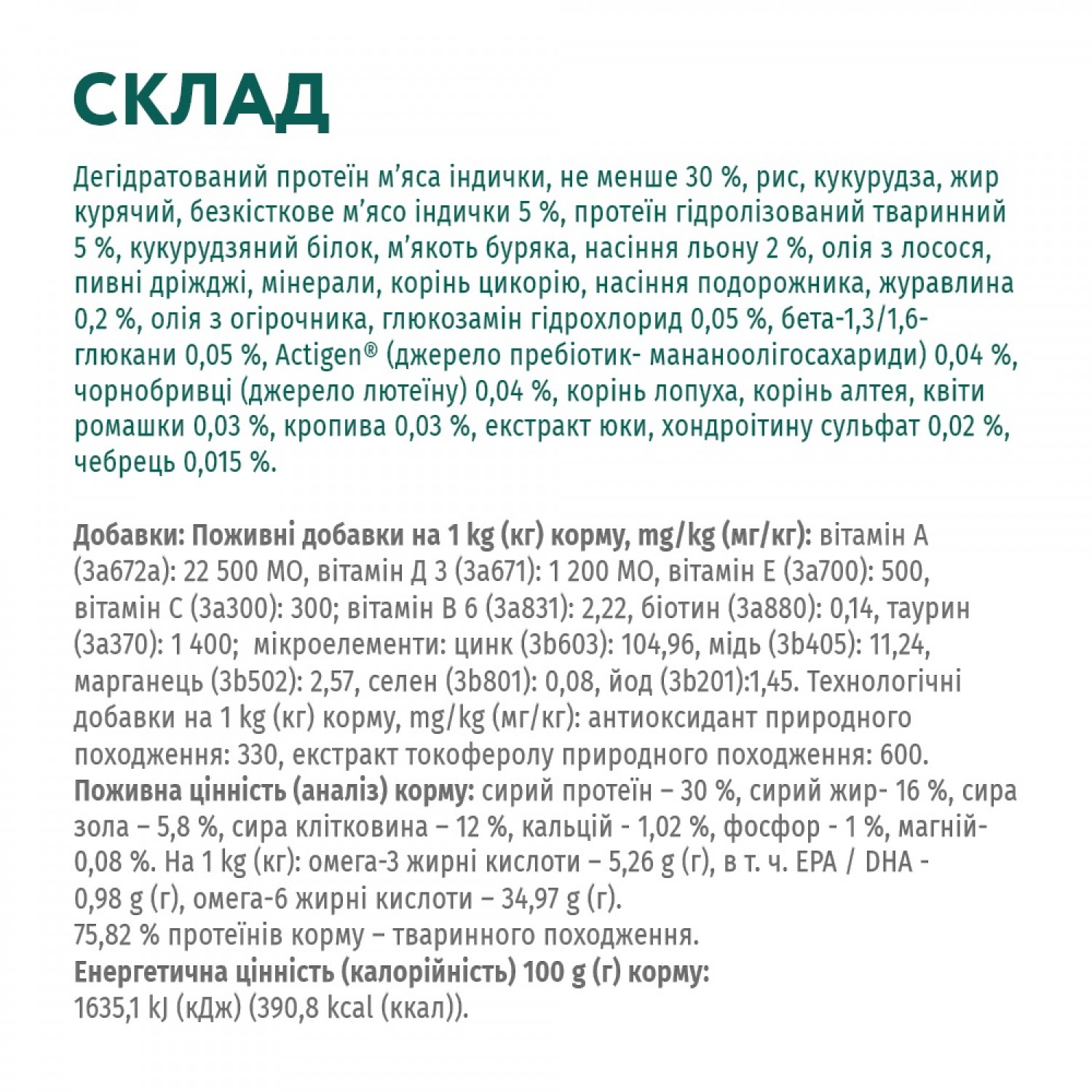 - Містить унікальний комплекс для зміцнення імунітету Immunity Support Mix, корисні трави, ягоди, натуральні антиоксиданти та пребіотики Омега-3 та 6, цинк, біотин допомагають підтримувати шкіру собаки здоровою, а шерсть блискучою.