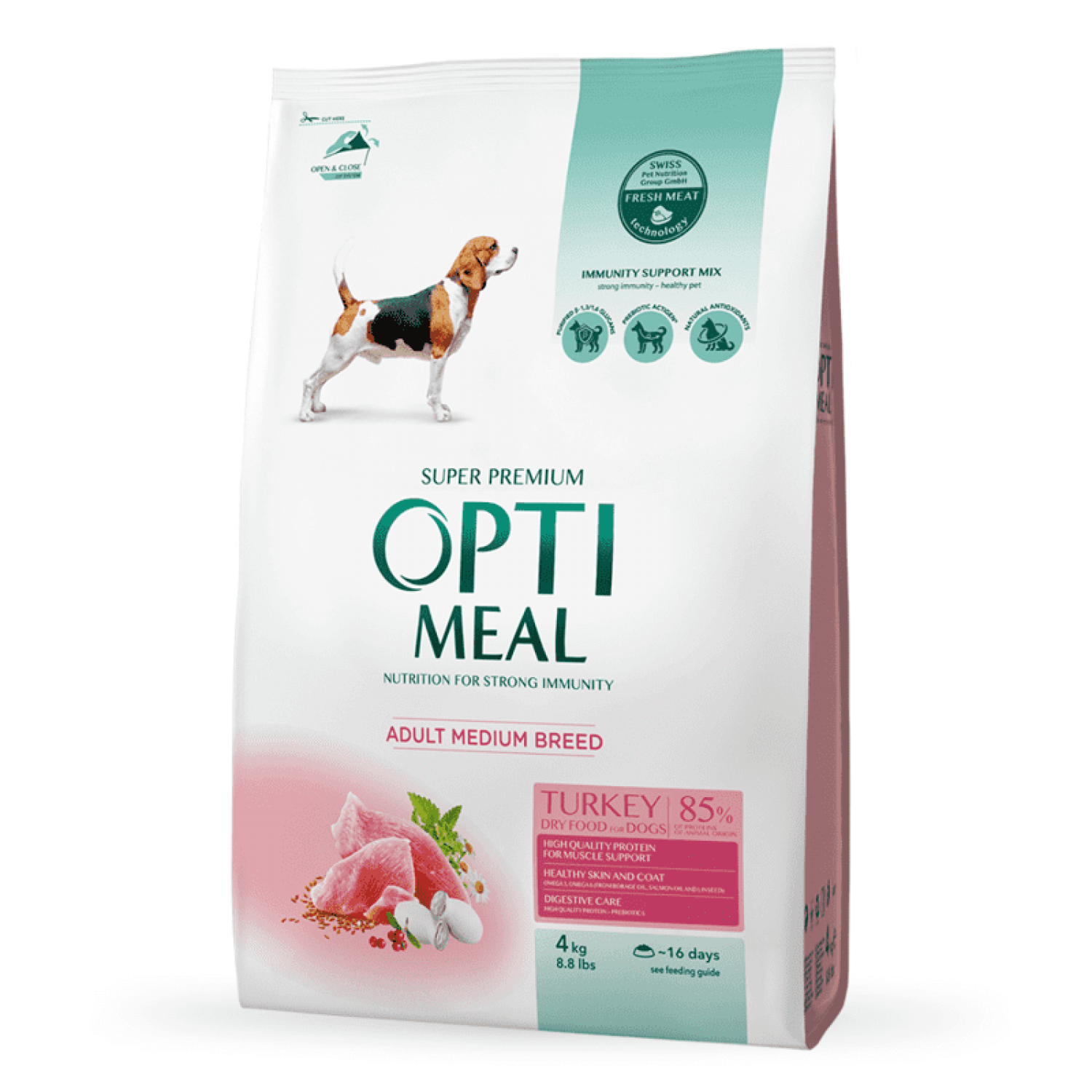 Optimeal Dog Adult Medium - повноцінне харчування з індичкою для дорослих собак середніх порід старше 12-и місяців.