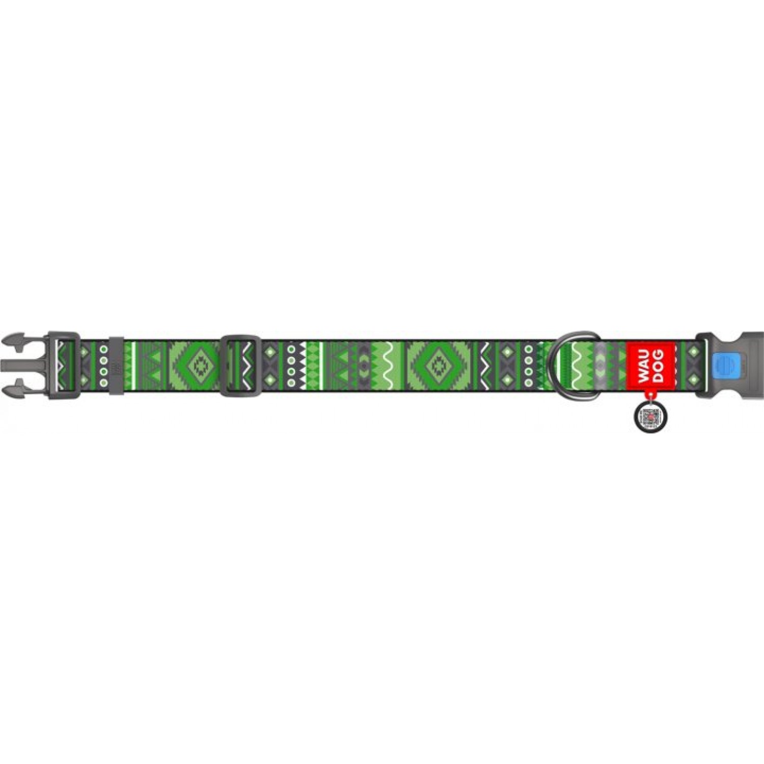 Collar WAUDOG Nylon нейлоновий нашийник "Етно зелений" з QR паспортом для собак.