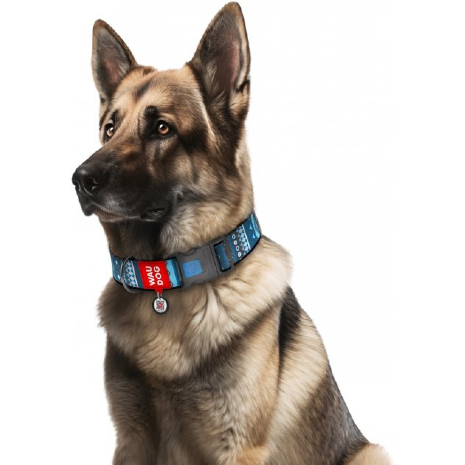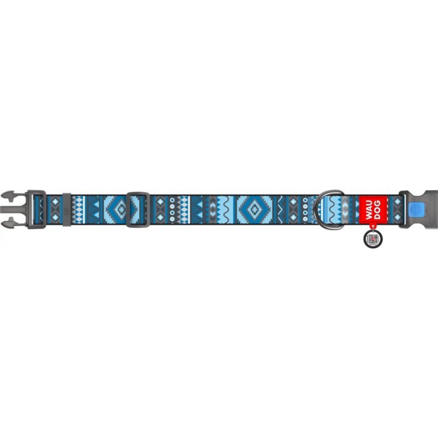 Collar WAUDOG Nylon нейлоновий нашийник "Етно синій" з QR паспортом для собак.