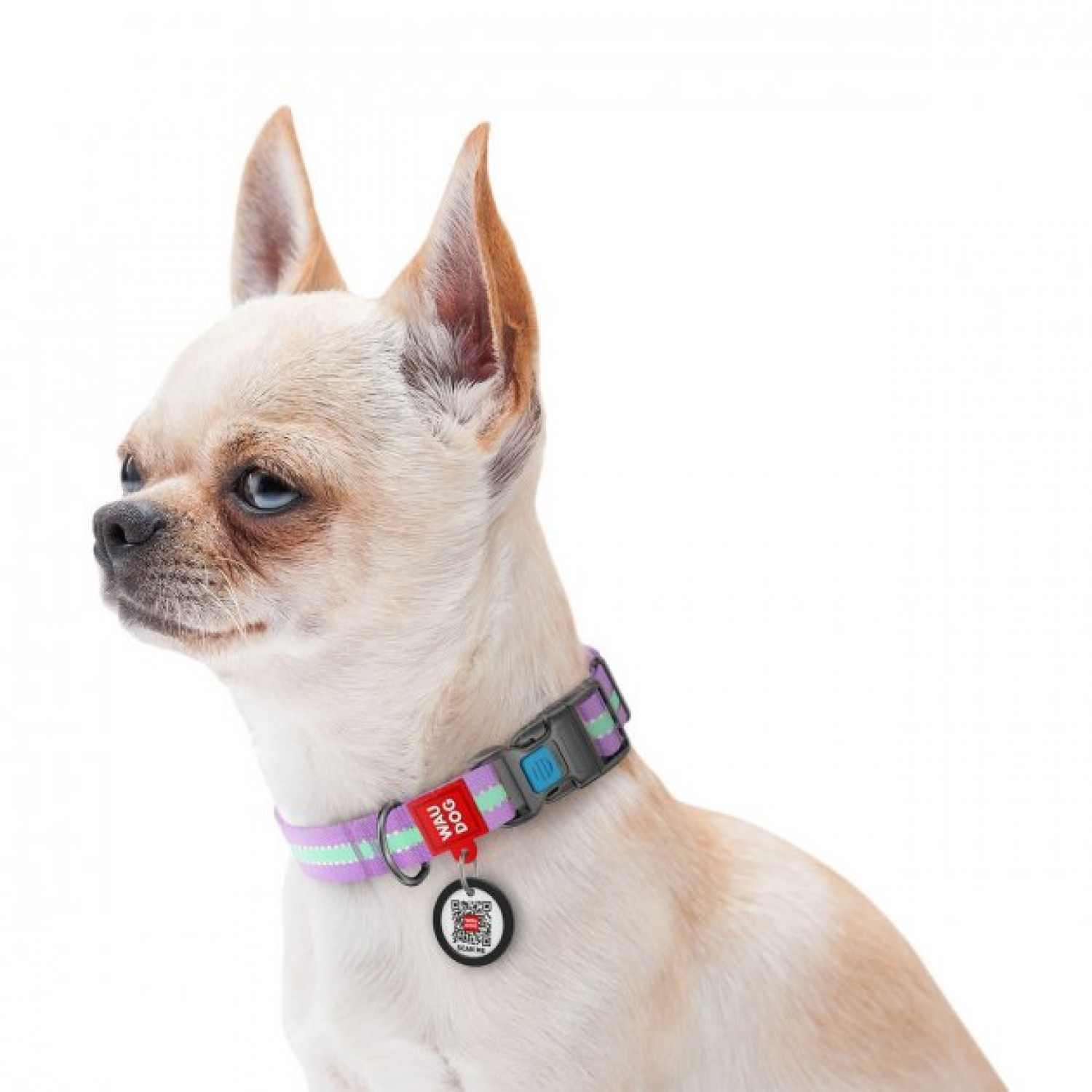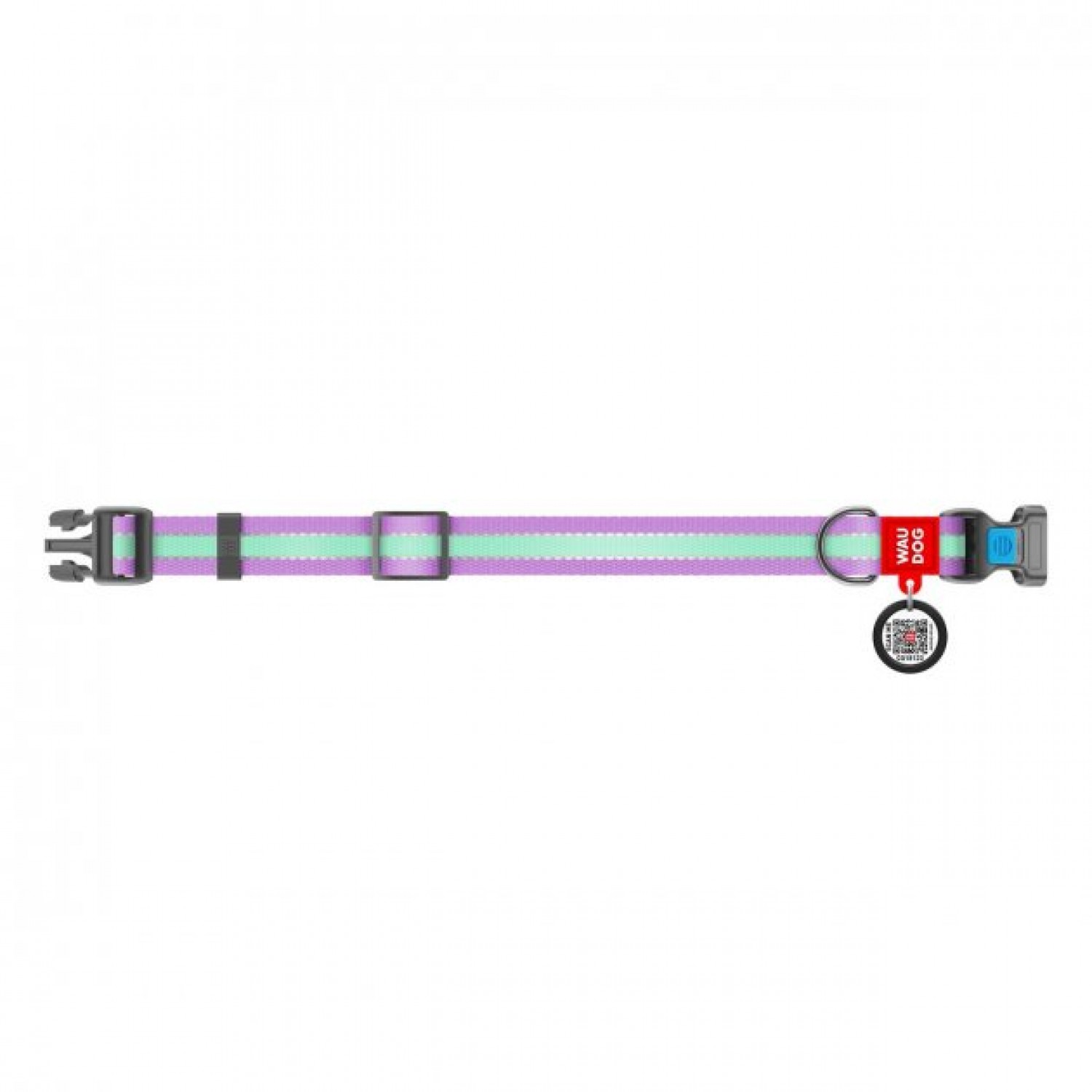 Collar WAUDOG Nylon світловідбивний нашийник, що світиться з QR паспортом для собак (фіолетовий).