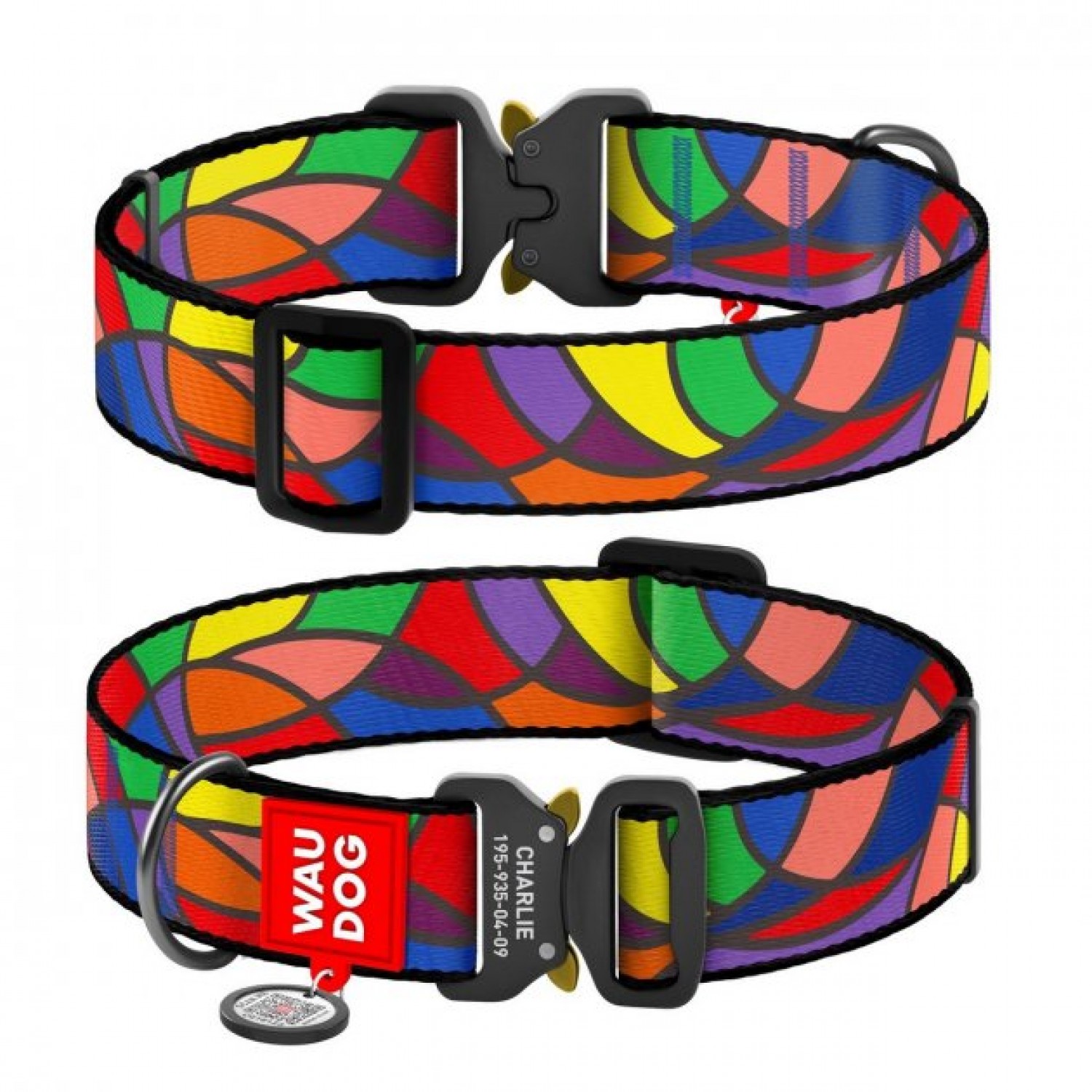 Collar WAUDOG Nylon нейлоновий нашийник "Вітраж" з QR паспортом та металевою фурнітурою для собак.
