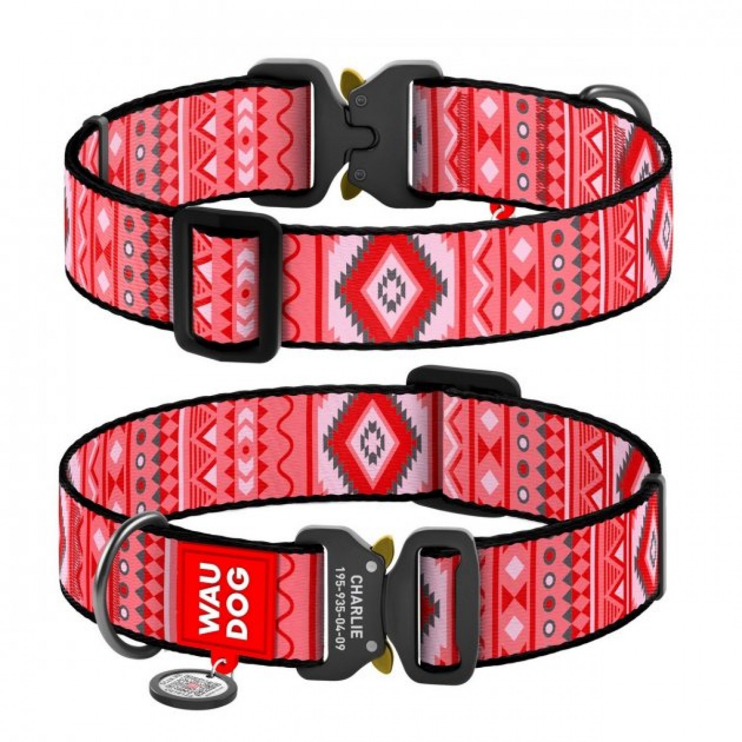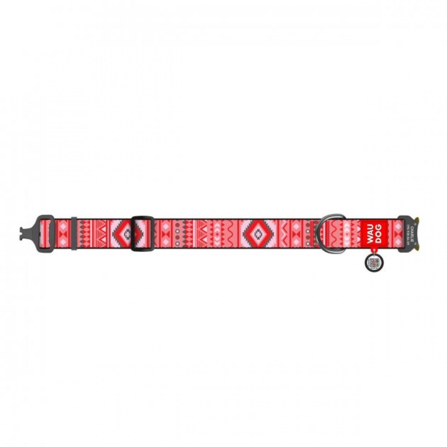 Collar WAUDOG Nylon нейлоновий нашийник "Етно червоний" з QR паспортом та металевою фурнітурою для собак.
