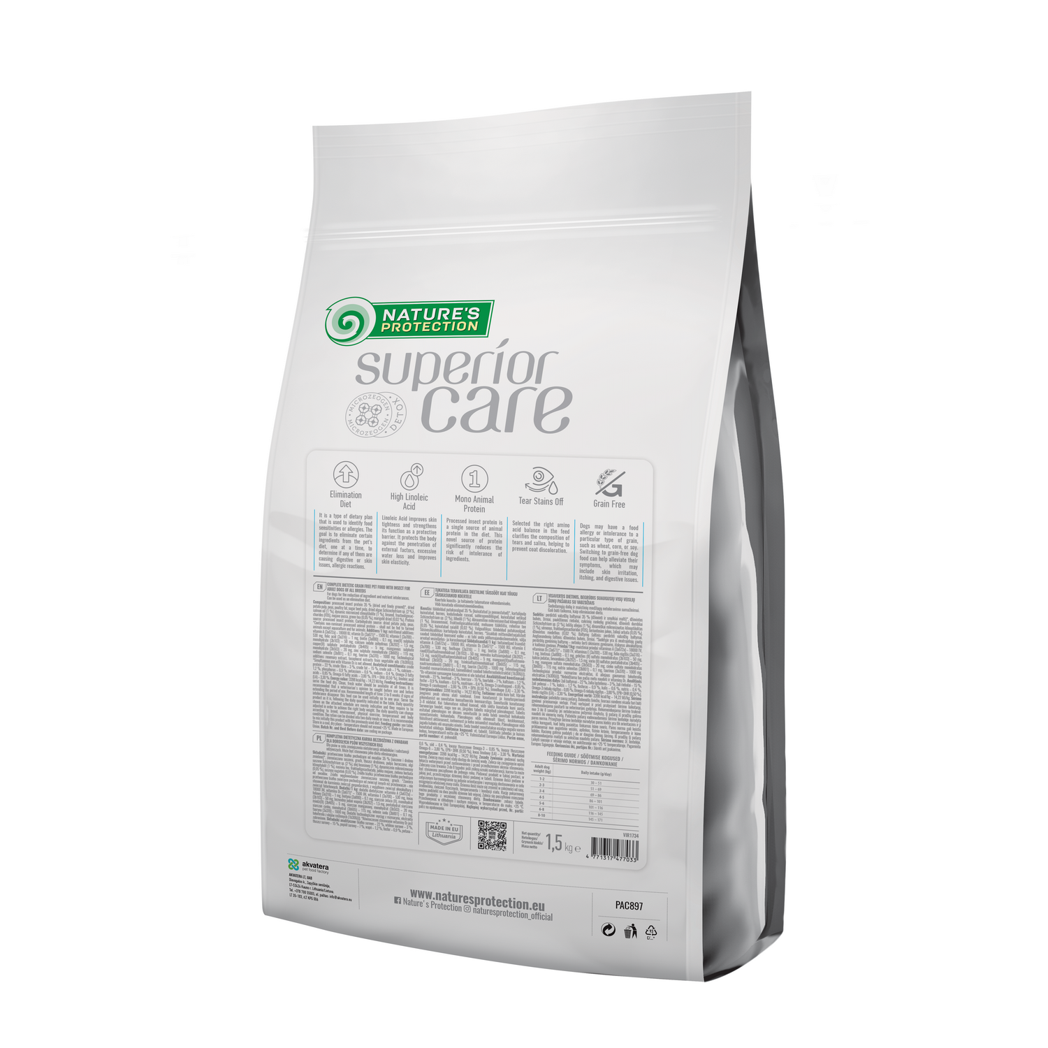 - Ретельно підібраний баланс амінокислот та інгредієнтів у цій дієті робить структуру сльози та слини більш прозорою, що допомагає уникнути побуріння шерсті від надлишку вологи.