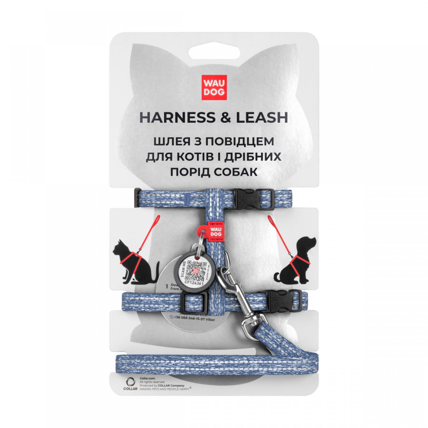 Collar WAUDOG Re-cotton шлея з повідцем для котів і малих собак з QR-паспортом (синя) XS.