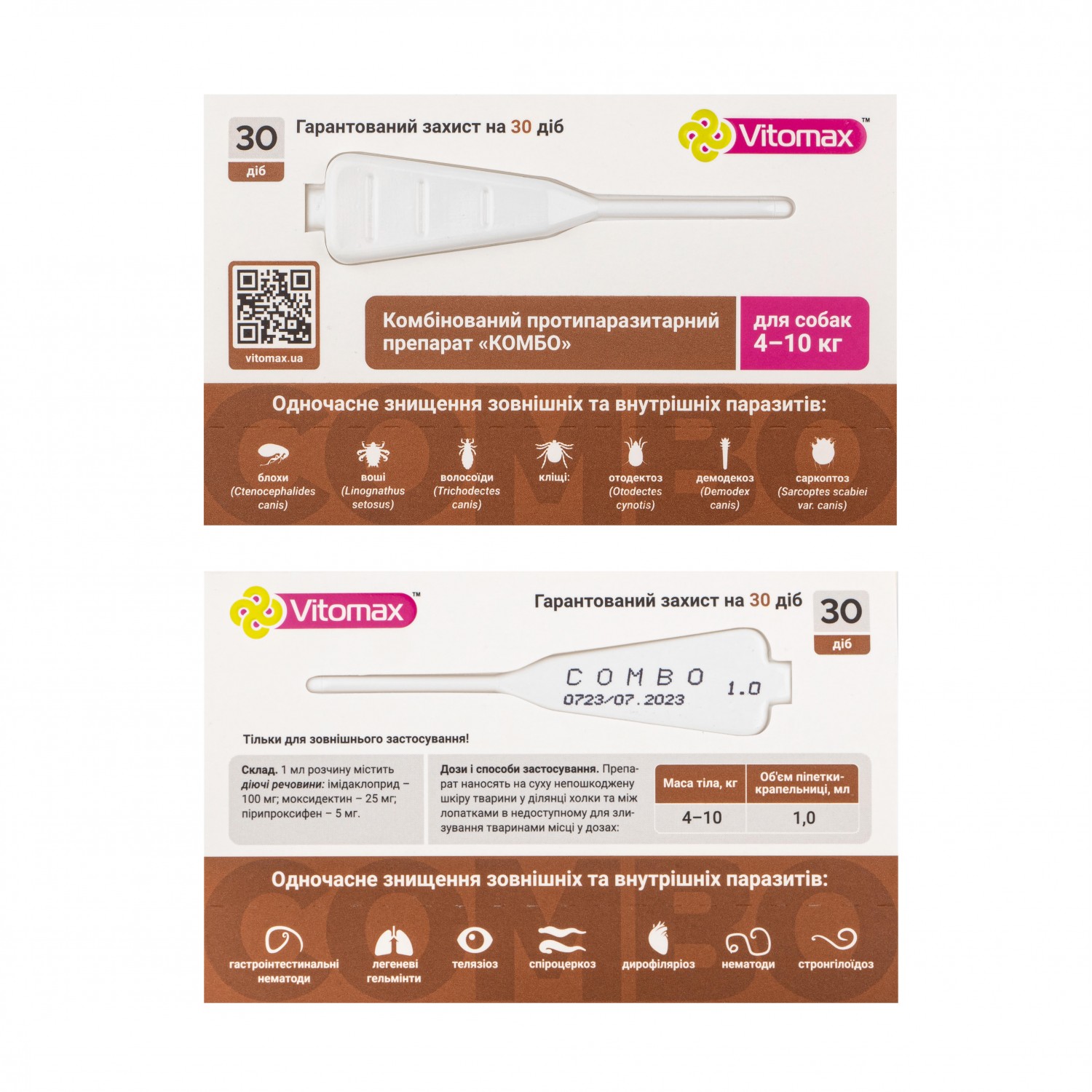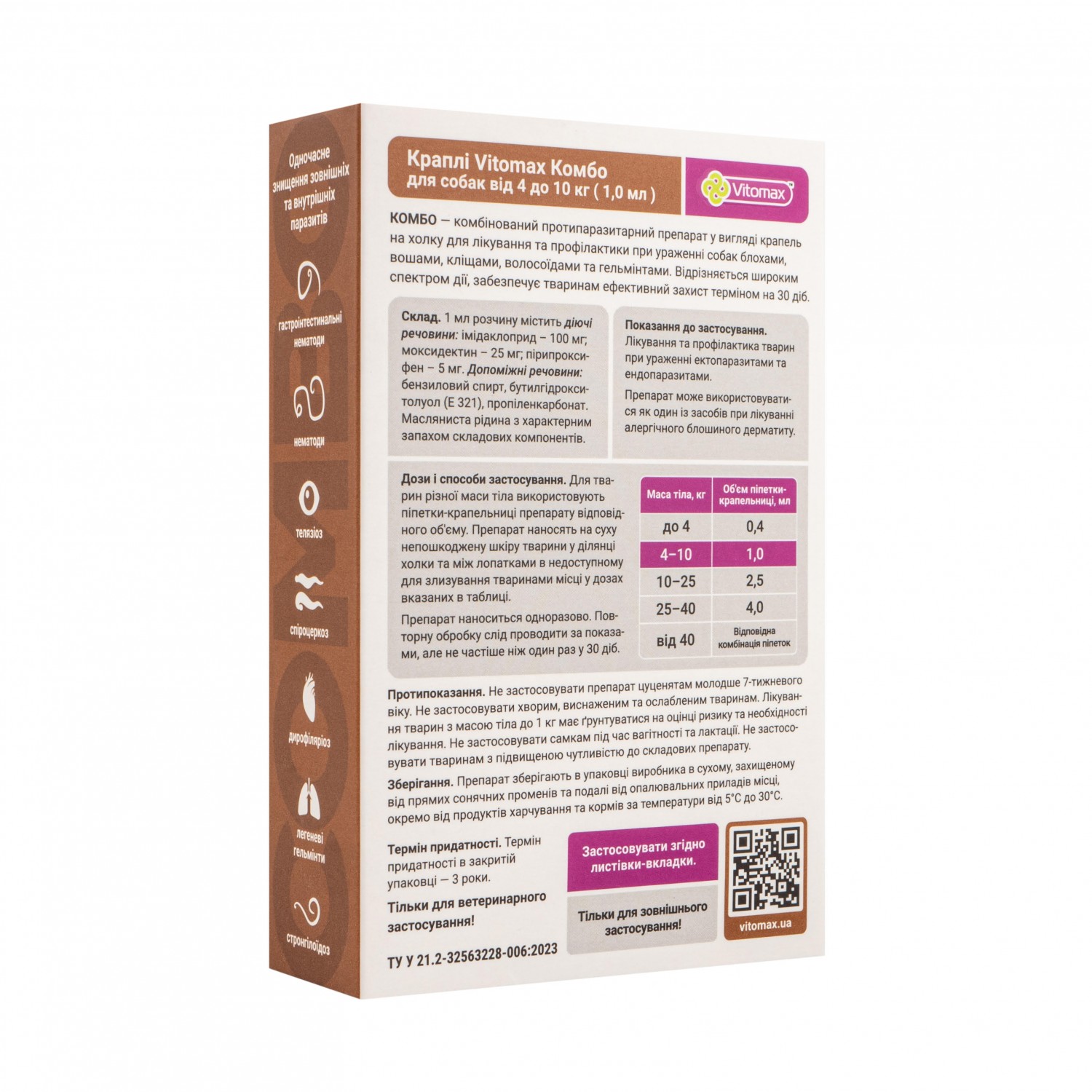 Vitomax Combo краплі від екто- та ендо-паразитів для собак від 4 до 10 кг.
