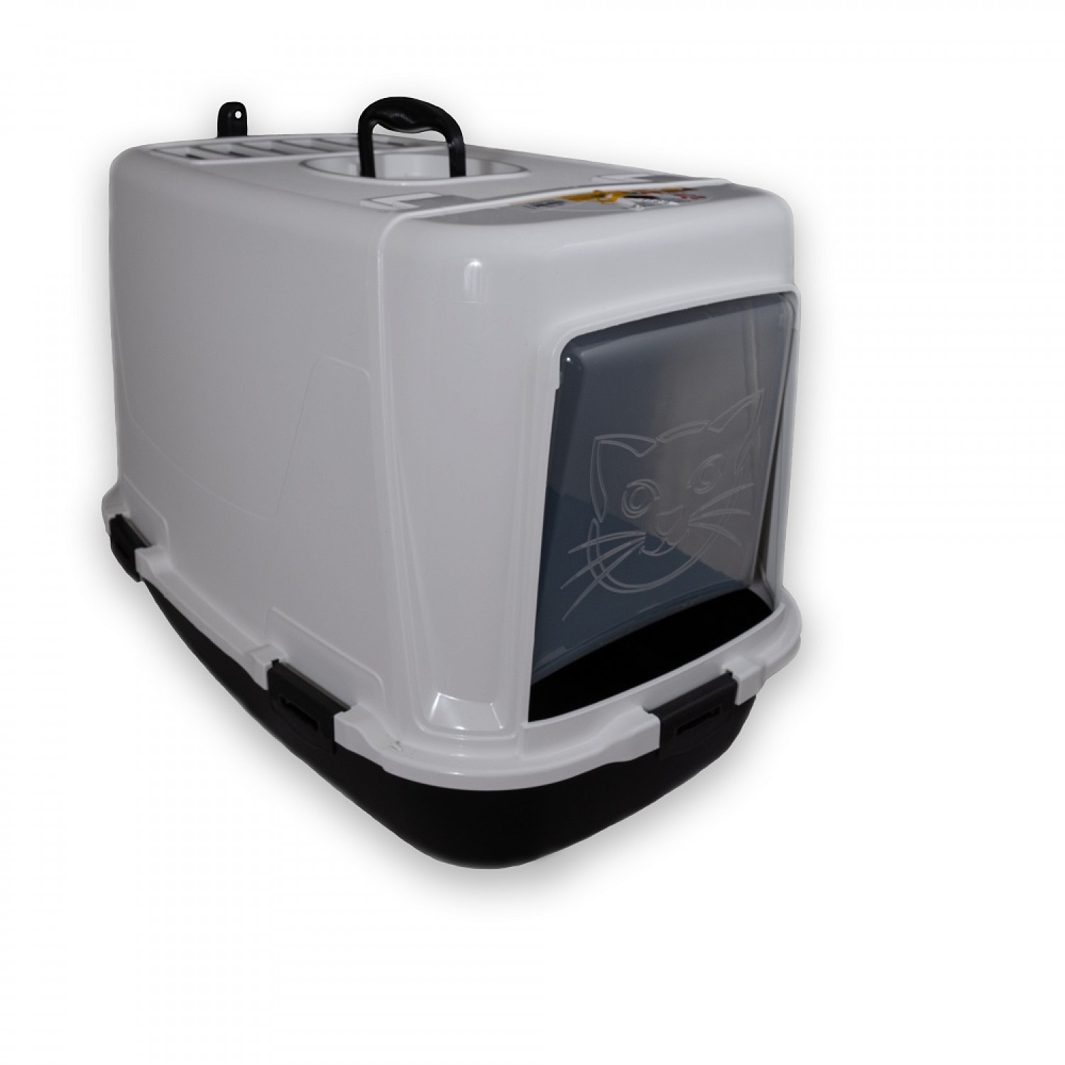 Багатофункціональна модель врятує вас від постійного сміття, яке люблять розкидати коти зі свого лотка. Його високий борт запобігає навіть необережному поводженню. Кришку туалету можна легко зняти, щоб прибрати в будиночку у вашого вихованця. Для цього скористайтесь спеціальним совком. Міцні пластикові стіни довговічні та безпечні для тварин. Передня стінка туалету обладнана дверцятами, які відкриваються вперед і назад. Кожен кіт швидко зрозуміє, як вона працює і буде із задоволенням заходити у свій новий будиночок.