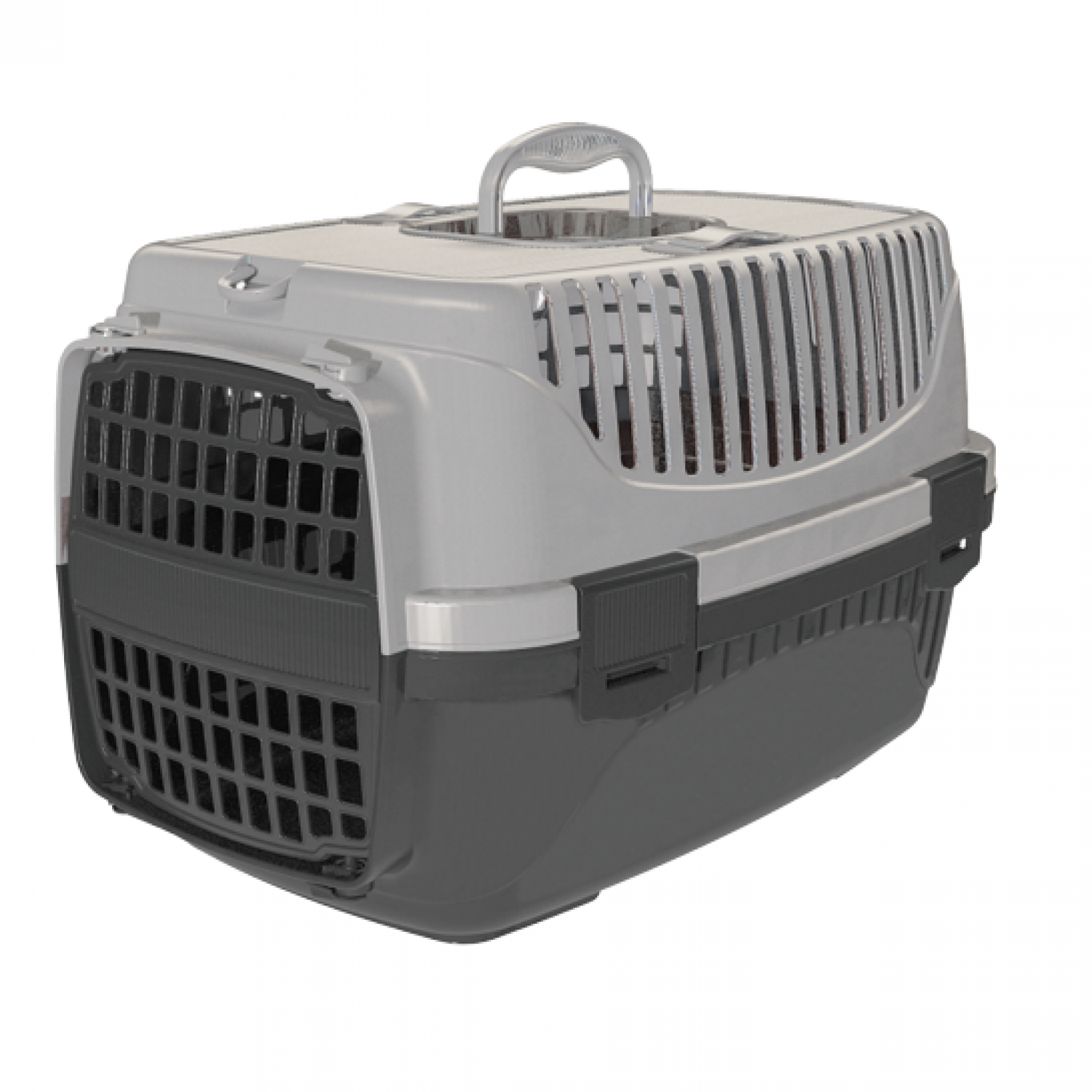 Irak Plast пластикова переноска для котів і собак до 8 кг (чорно-сіра).