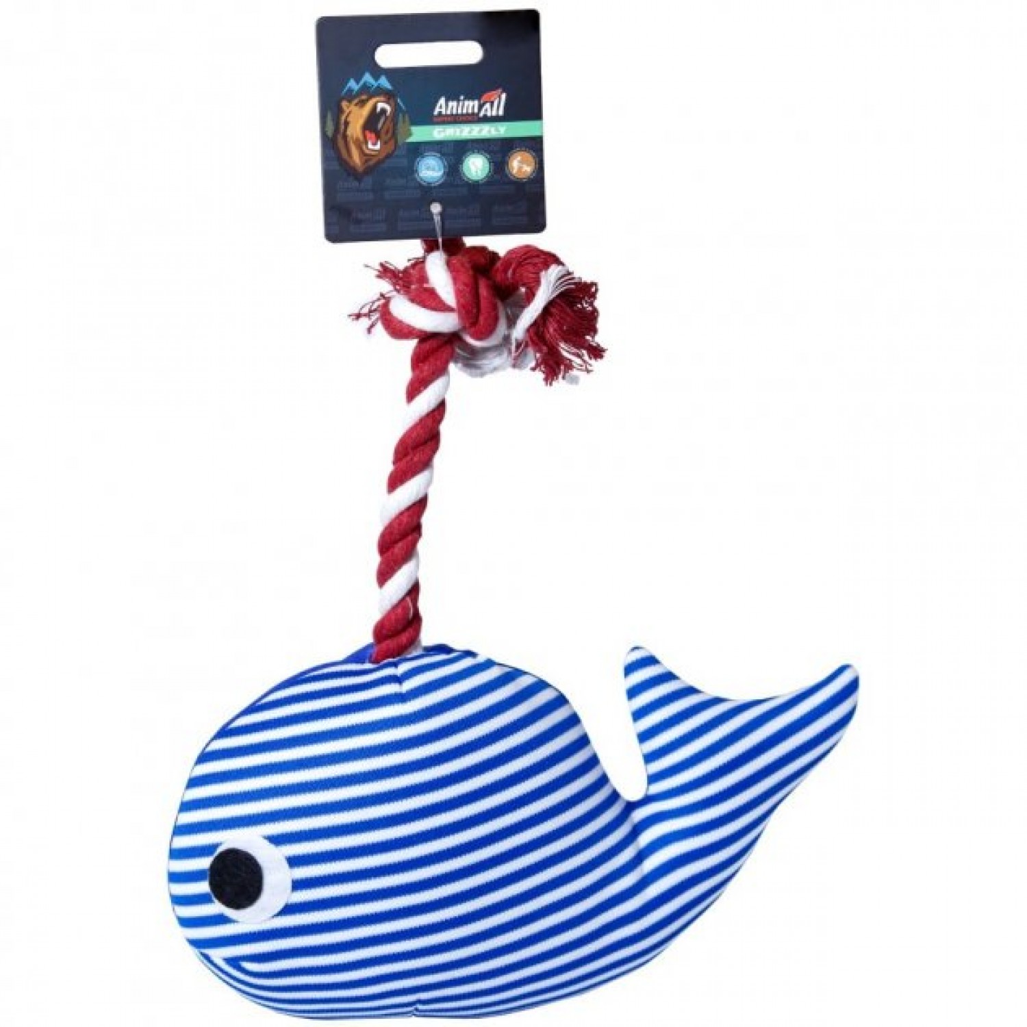 AnimAll GrizZzly м'яка іграшка для собак "Кит з пищалкою" (синьо-білий).