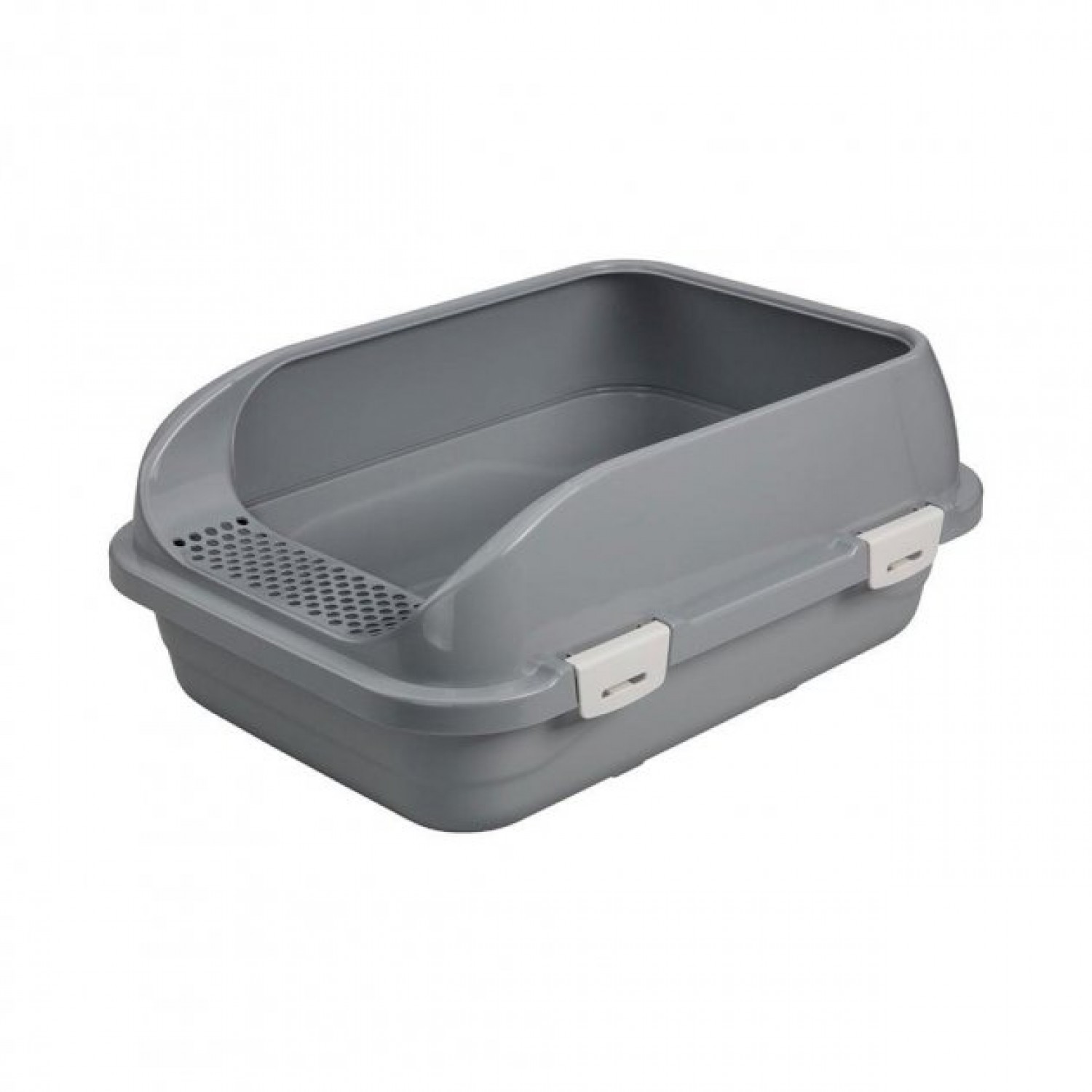Зручний пластиковий туалет з високим захисним бортиком. Практична прямокутна модель, спеціально оснащена додатковою знімною рамкою, яка перешкоджає розкиданню наповнювача навколо туалету.