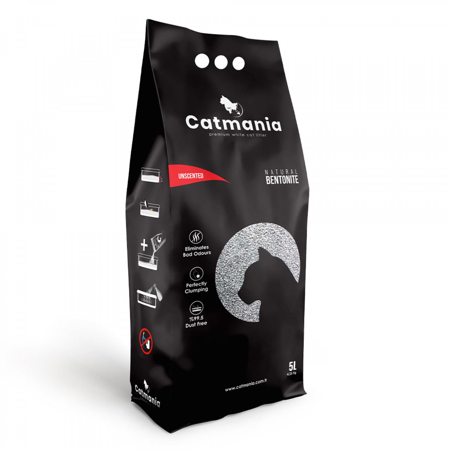 Catmania – білий природний бентонітовий наповнювач, який забезпечує чудову ефективність комкування. Наповнювач Catmania забезпечить більш комфортний та екологічний зміст вихованця. Гранули мають компактну форму, плоскі та досить тверді. Це дає чудову продуктивність для економічного та тривалого використання з ефективною боротьбою з неприємними запахами. Він має дуже високу абсорбційну здатність.
