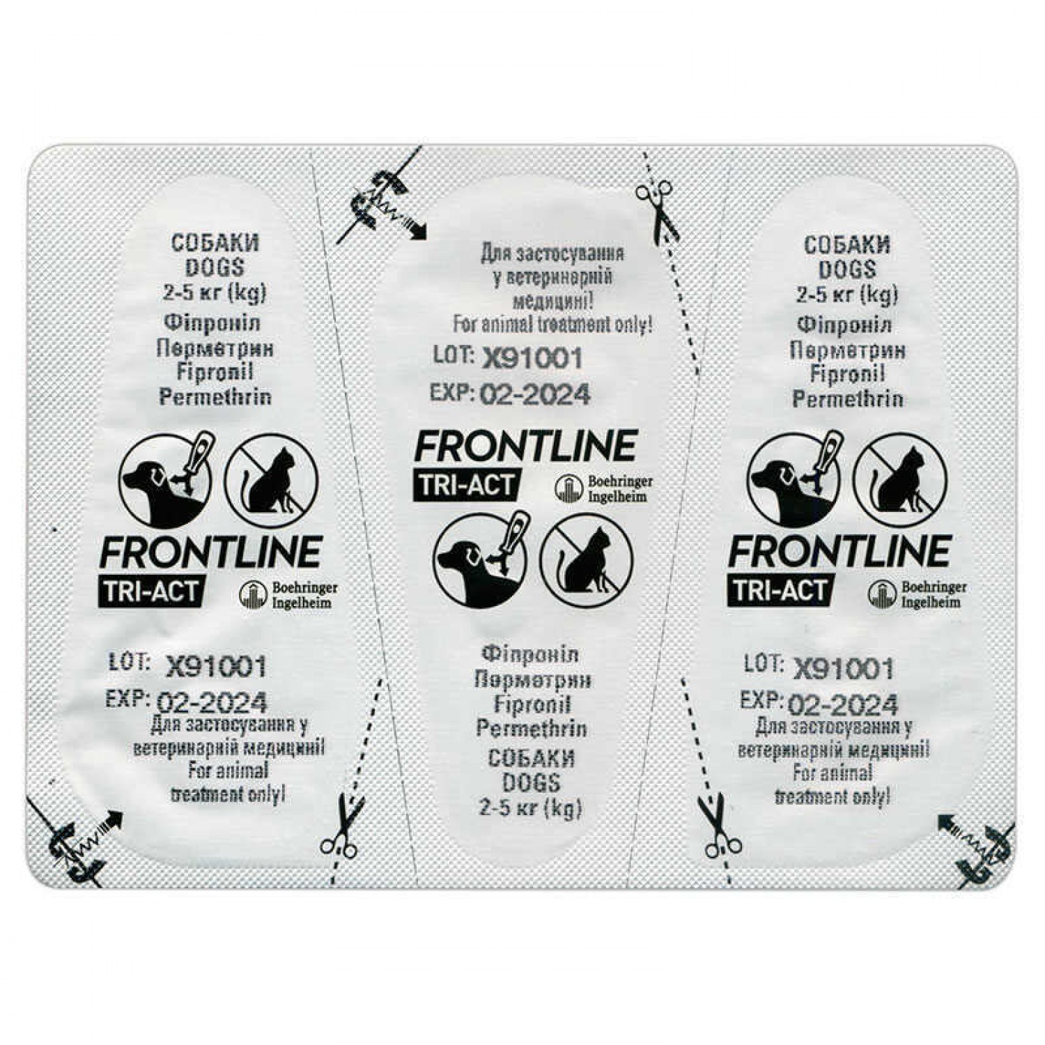 - Після обробки тварин препаратом не допускайте злизування препарату (використовуйте захисний комір, намордник, зафіксуйте щелепи допоміжними засобами) та утримуйте собак подалі від відкритого вогню та нагрівальних приладів.