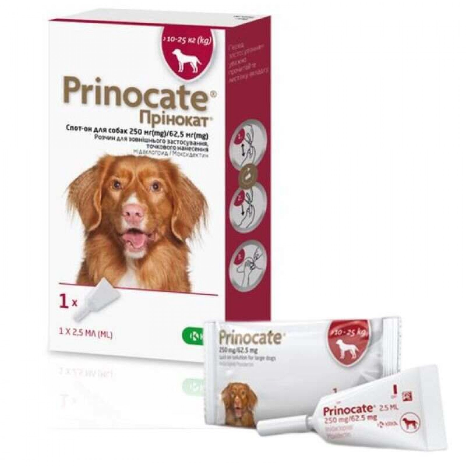 - Імідаклоприд після нанесення препарату на шкіру тварини швидко розповсюджується по шкірному покриву протягом однієї доби. Сліди імідаклоприду залишаються на шкірі протягом усього періоду лікування.
