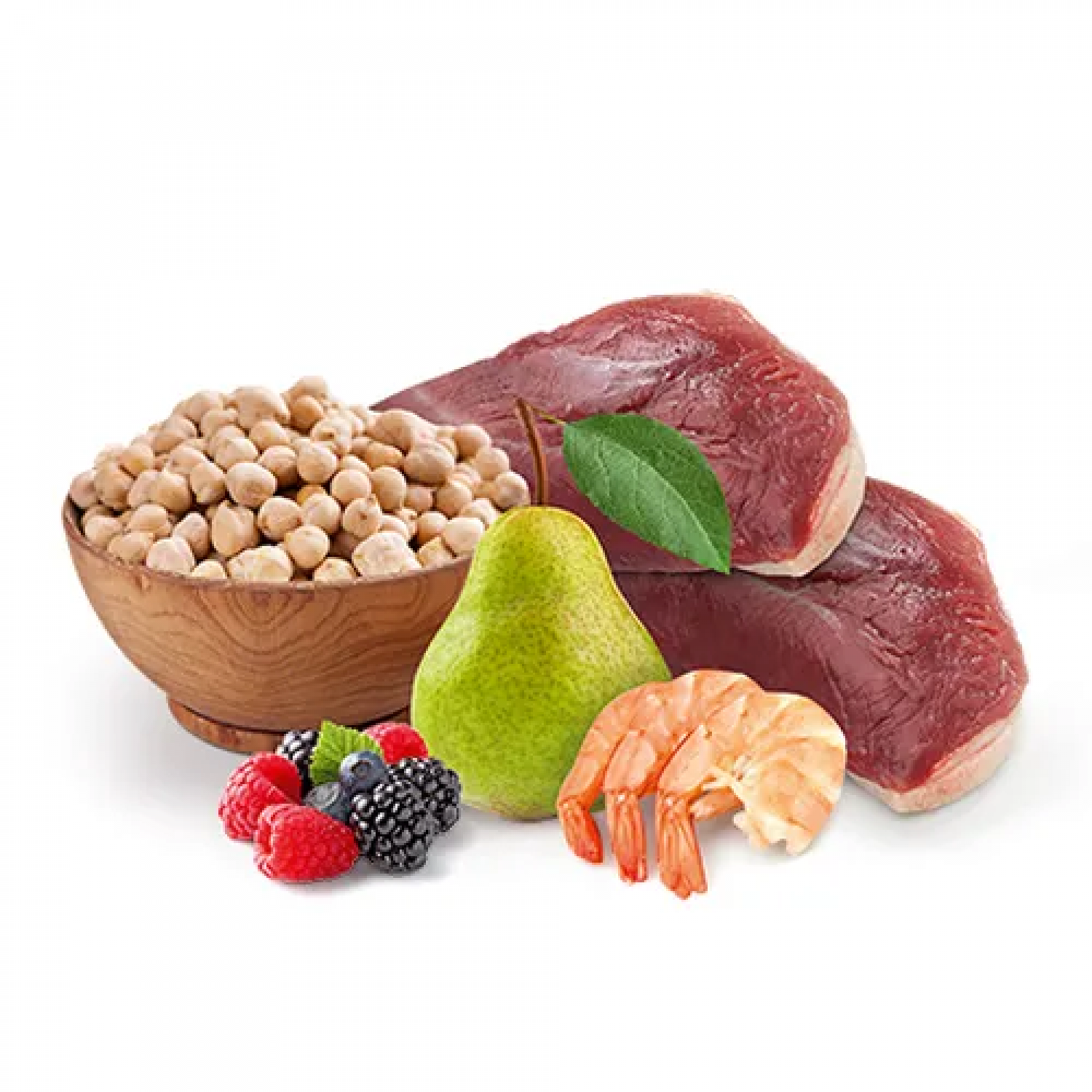 - Нут забезпечує вихованця збалансованою кількістю рослинного білка. У поєднанні із сушеним яблуком та цукатами гарбуза збагачує корм достатньою кількістю харчових волокон.