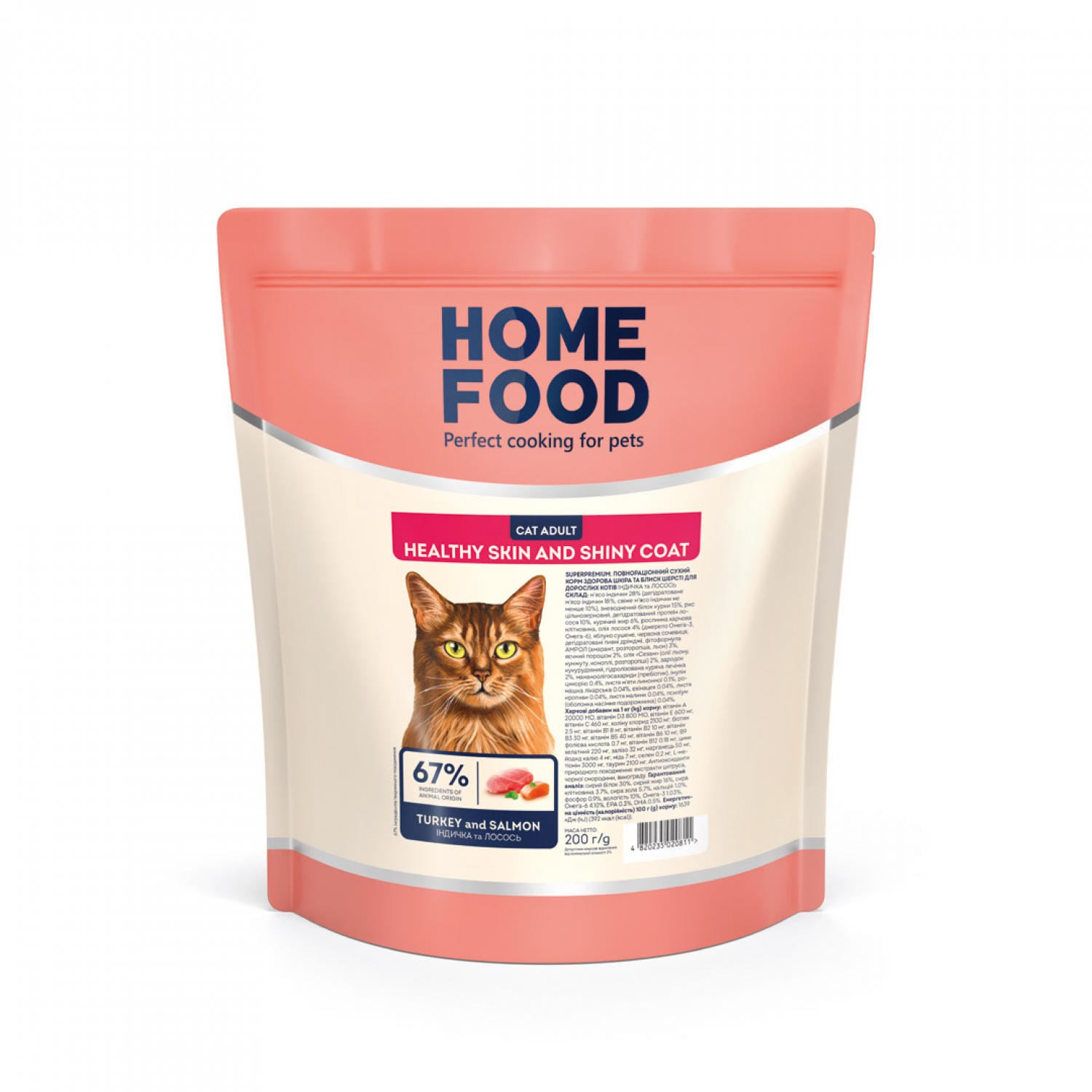 Home Food Cat Adult сухий корм для шкіри та шерсті котів "Індичка та лосось" 0,2 кг