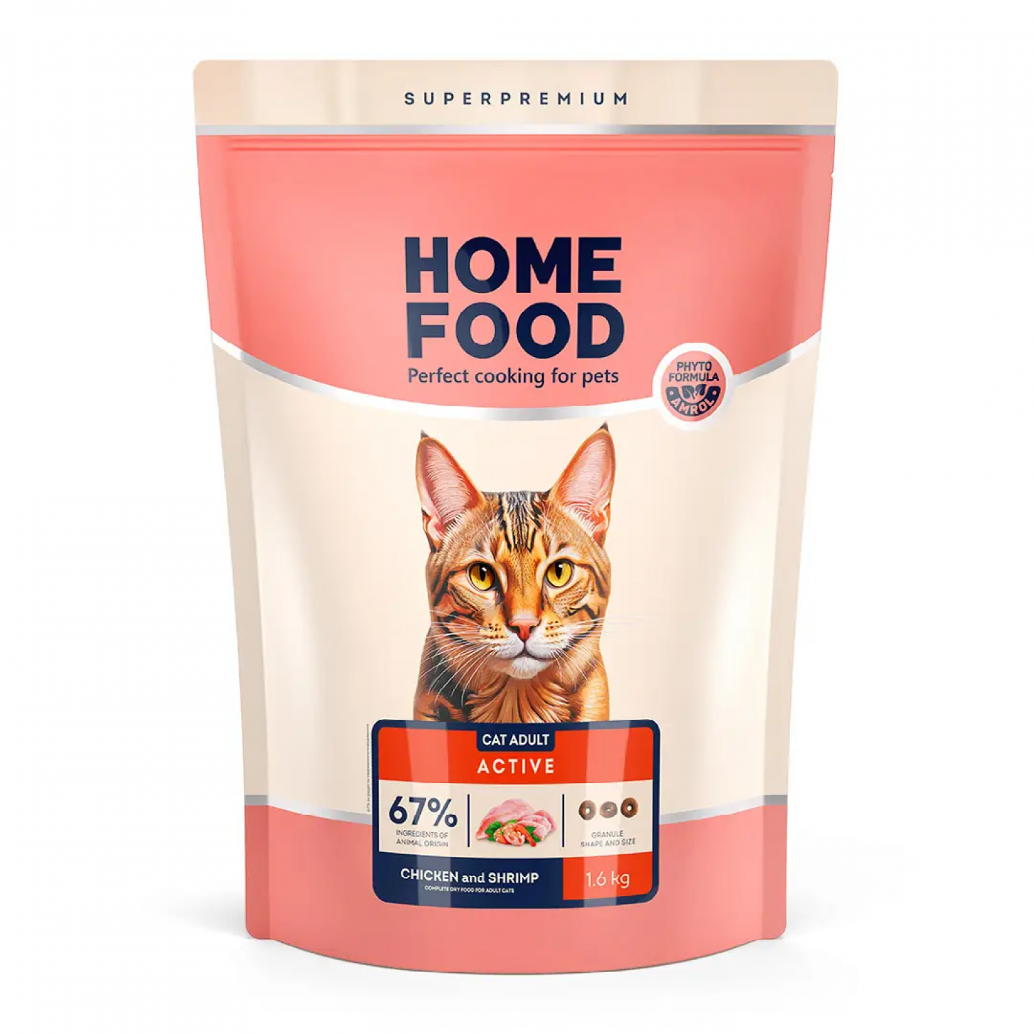 Home Food Cat Adult сухий корм для активних котів "Курочка та креветка" 1,6 кг