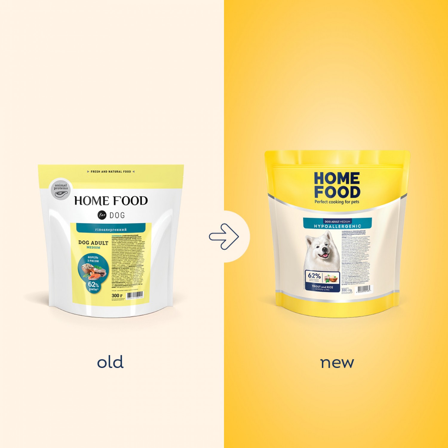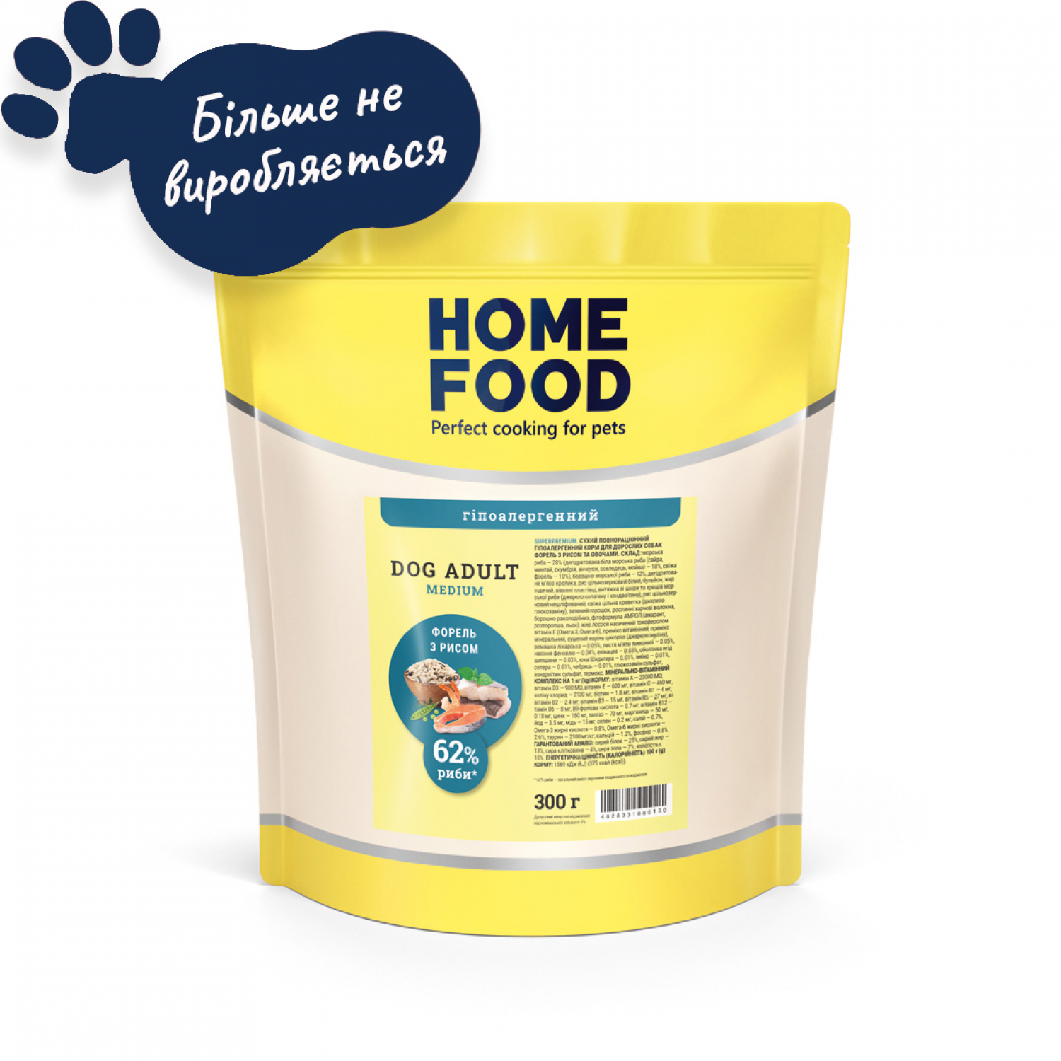 Home Food Dog Adult Medium гіпоалергенний сухий корм для собак середніх порід "Форель з рисом".