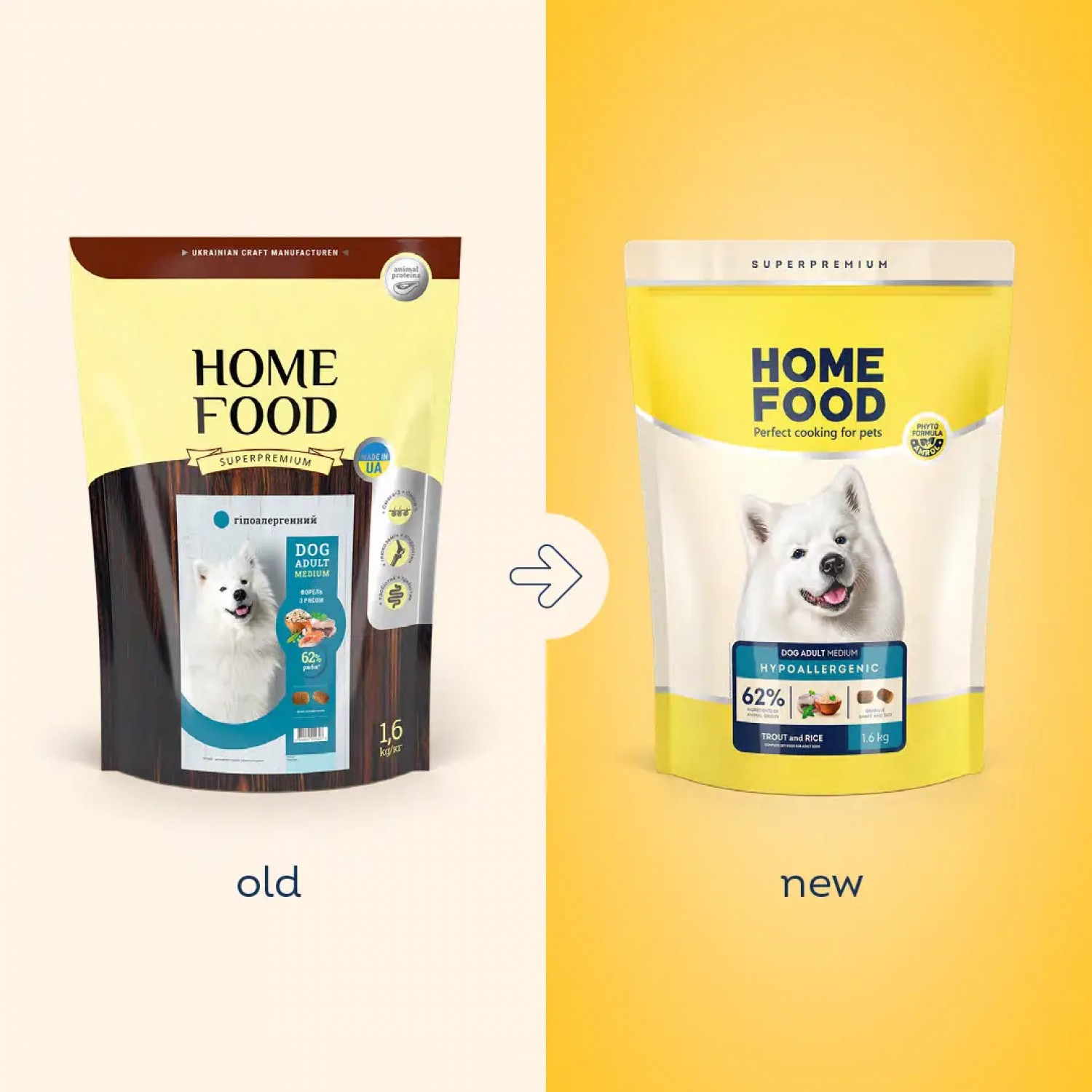 Home Food Dog Adult Medium гіпоалергенний сухий корм для собак середніх порід "Форель з рисом".