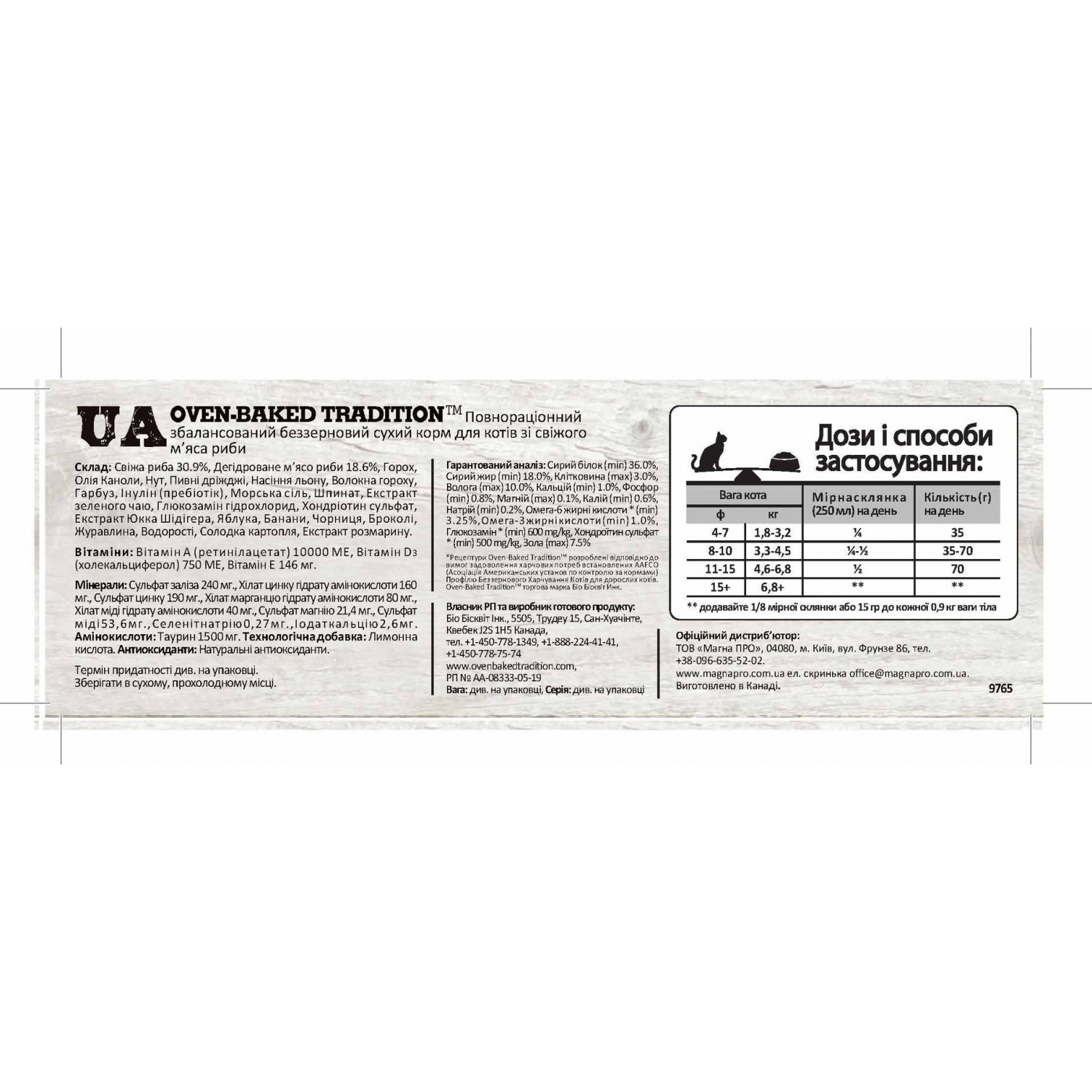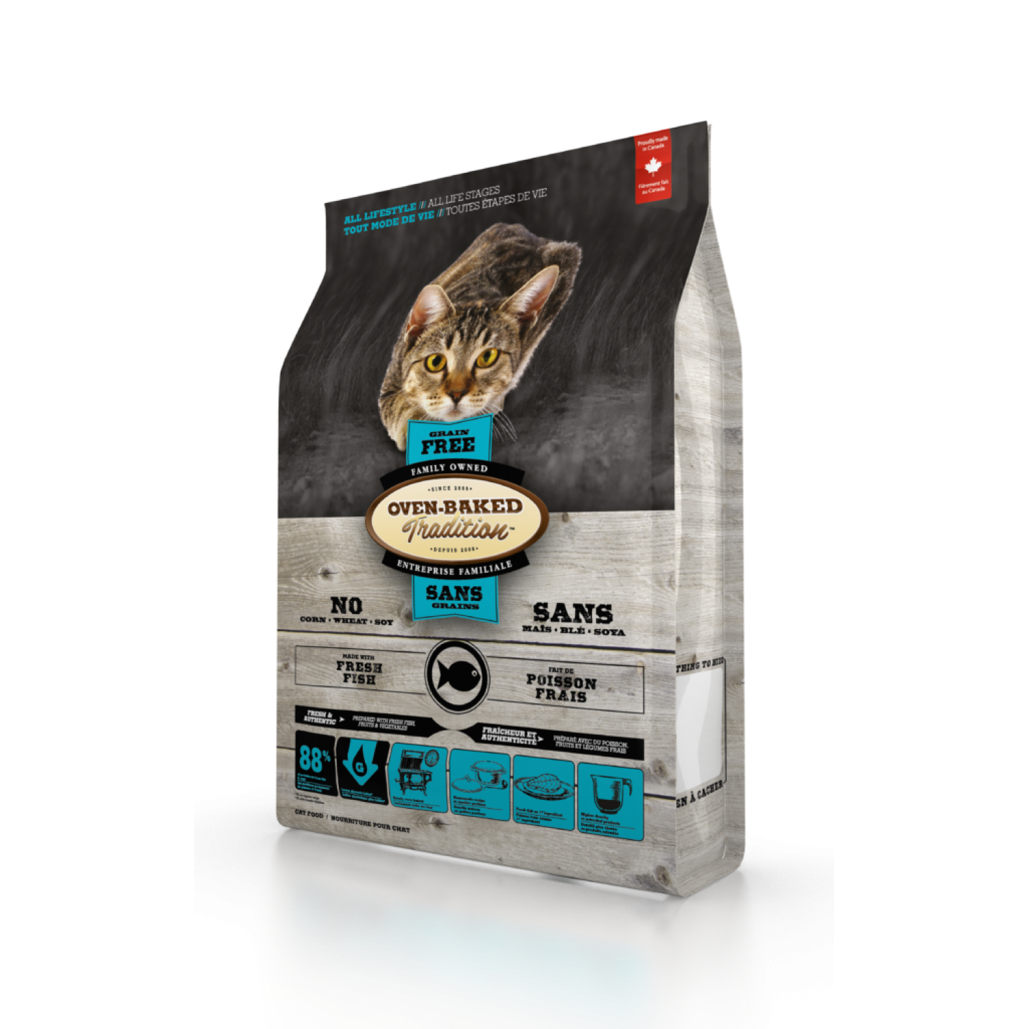 Oven-Baked Tradition повністю збалансований беззерновий сухий корм для котів зі свіжого м’яса риби.