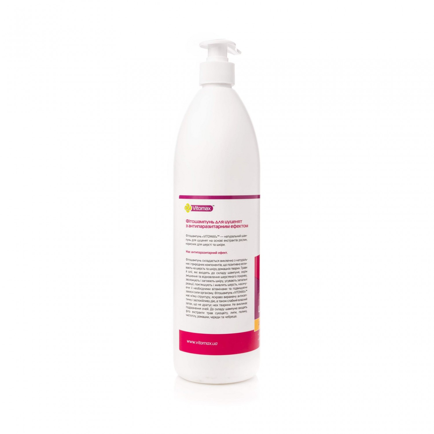 Фітошампунь ТМ Vitomax - натуральний шампунь для цуценят на основі екстрактів рослин, корисних для шерсті і шкіри. Даний шампунь володіє антипаразитарними властивостями, захищаючи маленького вихованця від ендопаразитів.