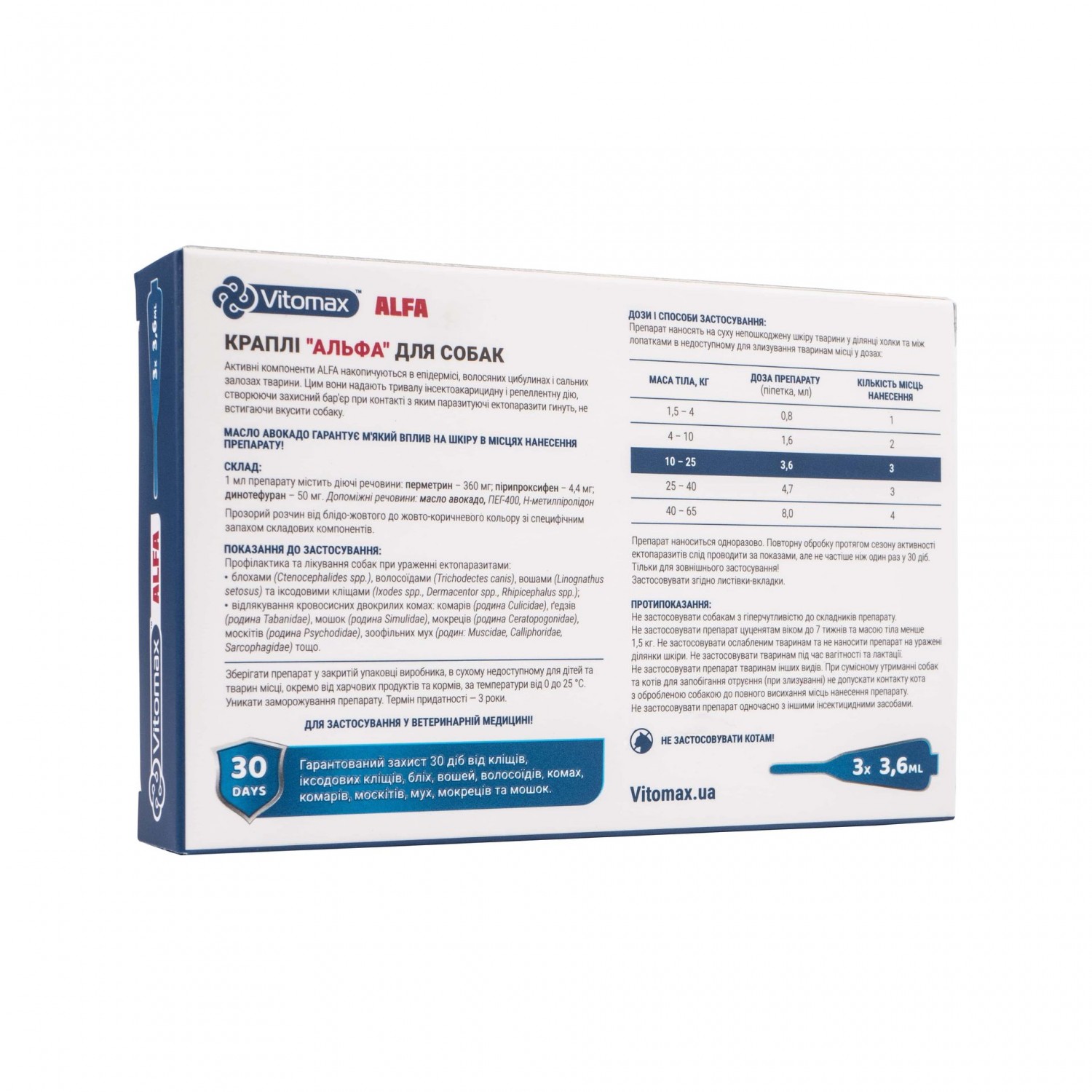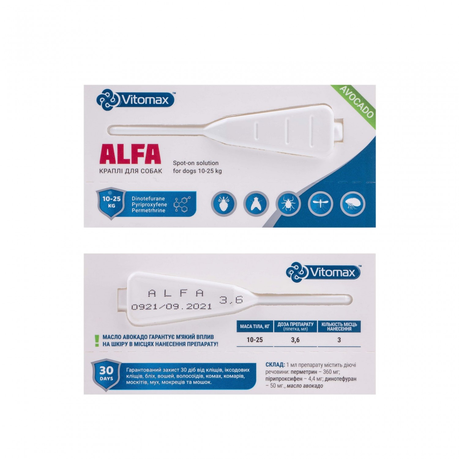 Vitomax (Вітомакс) Alfa краплі на холку для собак від 10 до 25 кг. 3.6мл