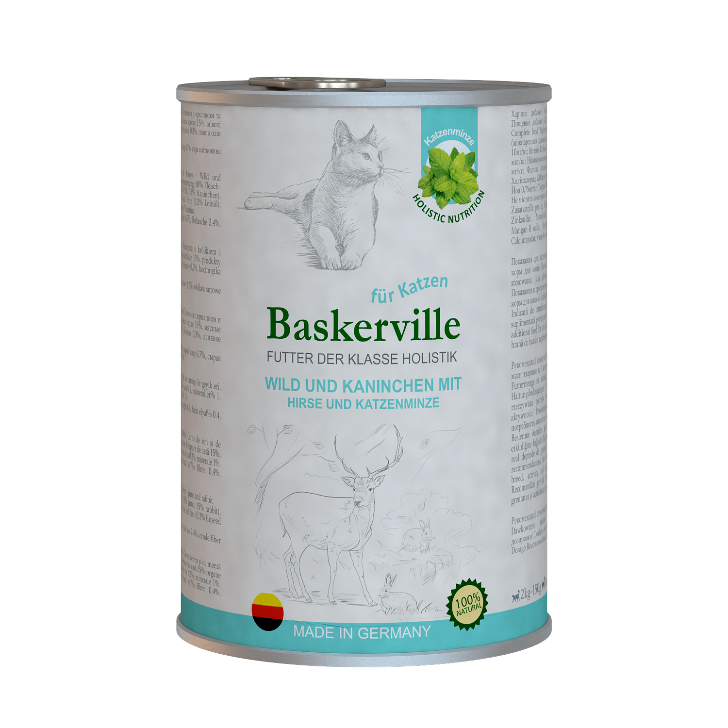 Консервований корм класу холістик для кішок Baskerville Оленіна з кроликом та котячою м'ятою