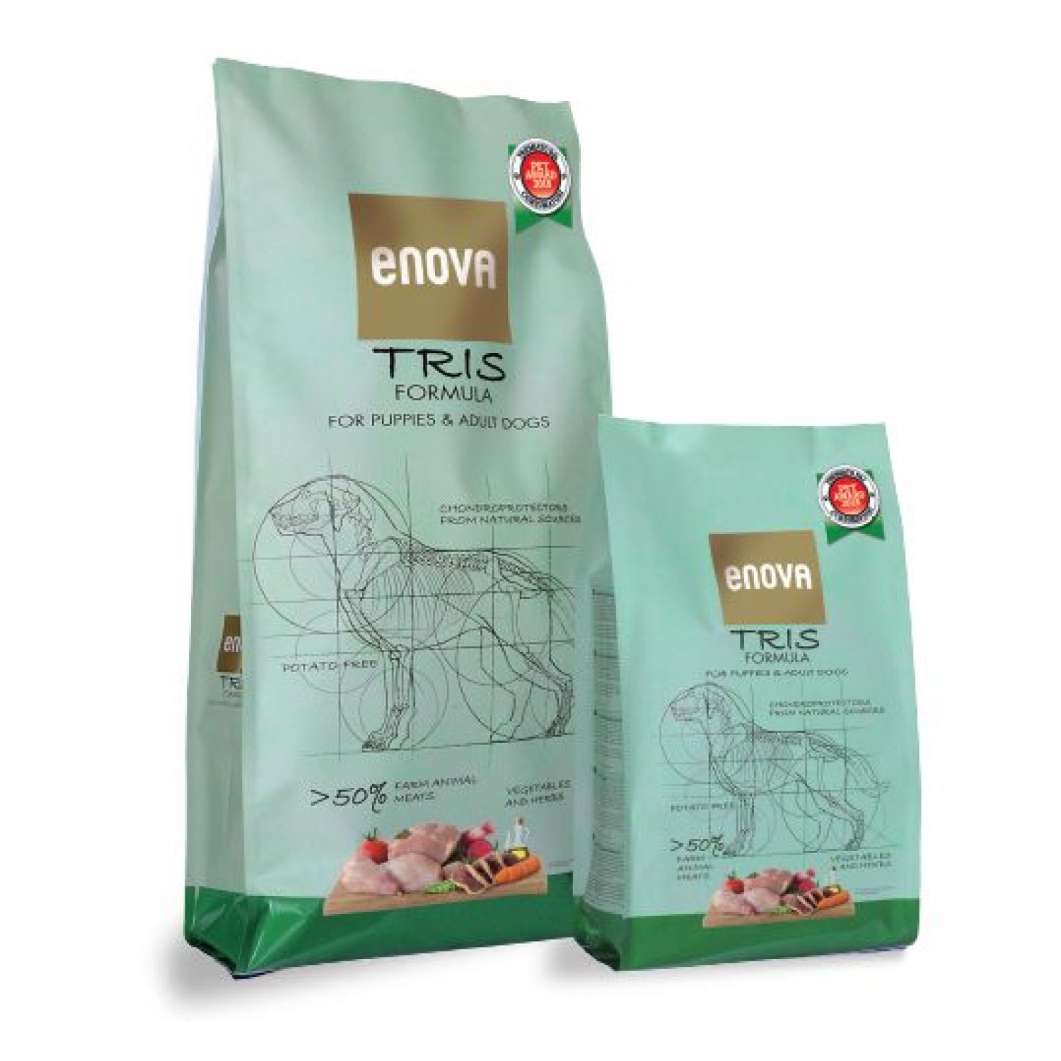ENOVA Tris Formula - повнораціонний беззерновий сухий корм для собак всіх порід на всіх стадіях життя.