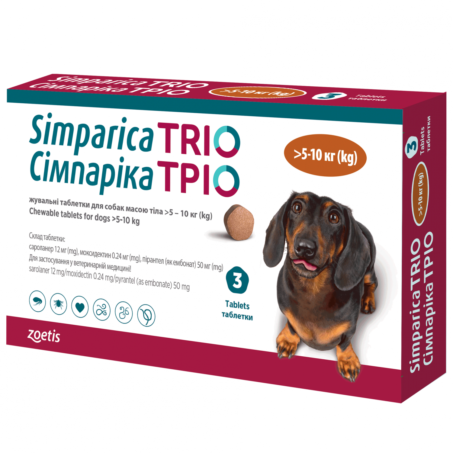 Препарат призначений для пероорального застосування. Собака може приймати таблетку з їжею так і без. Таблетки Сімпаріка ТРІО приємні на смак і легко споживаються більшістю собак, коли їх пропонує власник. Таблетки не потрібно ділити.