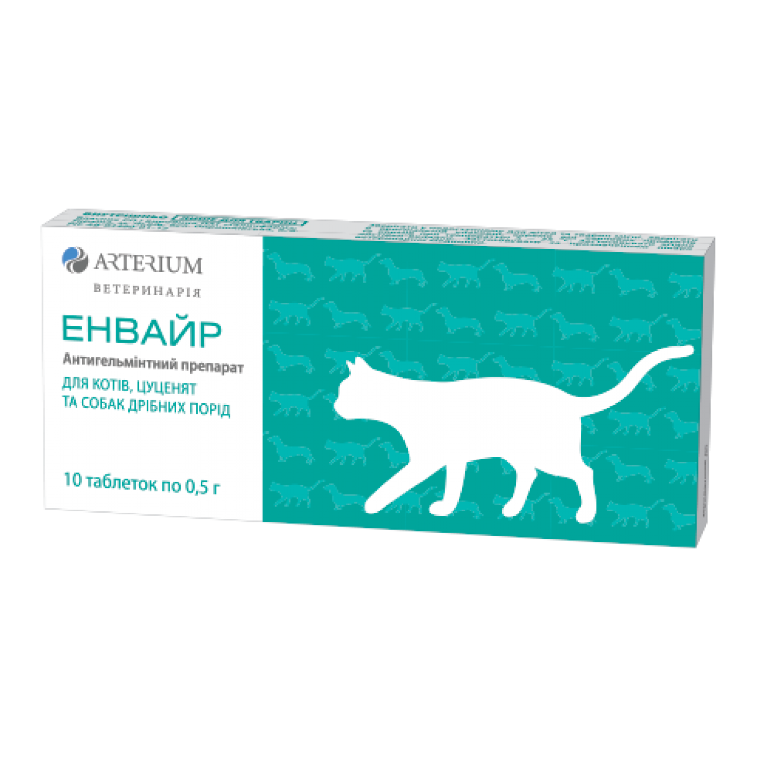 Широкий спектр антигельмінтної дії на круглі та стьожкові гельмінти ґрунтується на фармакологічній дії складових препарату ЕНВАЙР. Пірантелу памоат (ембонат) активний проти нематод (круглих гельмінтів), впливає на їх холінергічні рецептори, що призводить до незворотного спастичного паралічу паразитів. Нематоди виводяться з організму тварин назовні перистальтичними рухами кишківника. Празіквантел активний проти цестод (стьожкових гельмінтів), швидко всмоктується через їх тонкий покрив (тегумент). Підвищує проникливість мембран для іонів кальцію, викликає підвищення м'язової активності, яке змінюється скороченням мускулатури та спастичним паралічем, викликає руйнування зовнішнього покриву цестод дорослих форм. У деяких випадках стьожкові гельмінти під дією празіквантелу повністю перетравлюються і не виявляються у фекаліях.