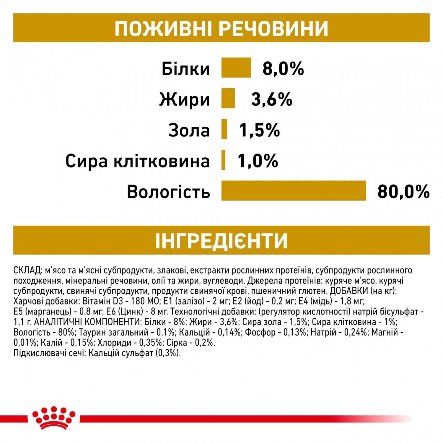 Консервований корм Royal Canin Urinary S/O - це ветеринарна дієта для собак при захворюваннях сечовидільної системи. Корм виготовлений у вигляді м'ясних часточок в запашному соусі.