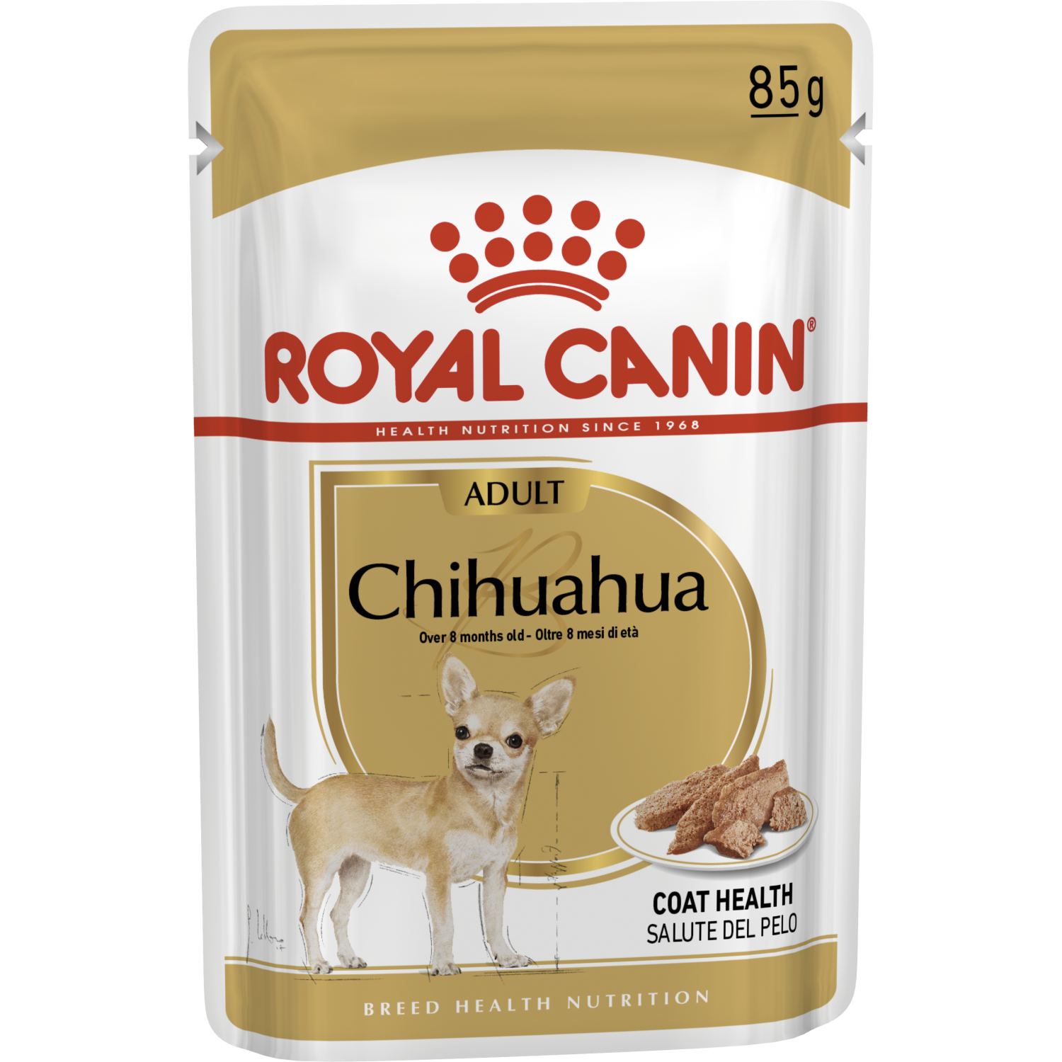 Royal Canin CHIHUAHUA ADULT вологий корм у вигляді паштету для дорослих собак (від 8 місяців) породи чихуахуа. Відмінно збалансований вологий корм насичений амінокислотами, що забезпечують вашому вихованцю чудовий вигляд блискучої та здорової вовни.