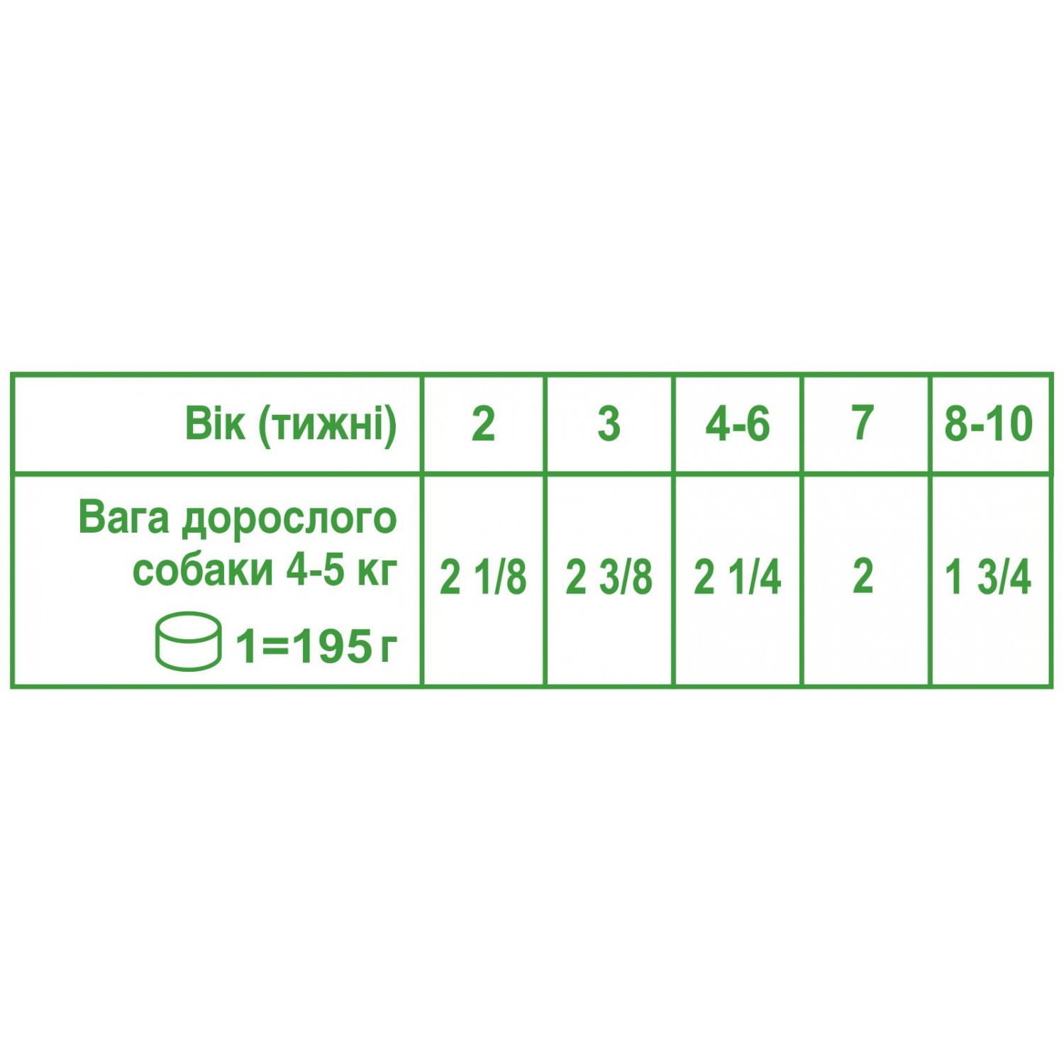 Повністю задовольняє потреби цуценяти в харчуванні в період зростання.