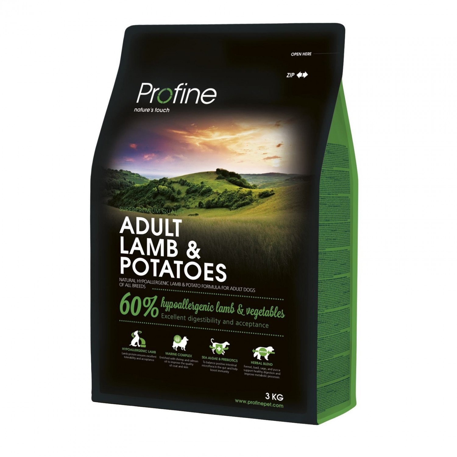 Сухий корм для дорослих собак всіх порід Profine Adult Lamb з ягням. Натуральная формула супер-преміум класу. Корм Profine відрізняється високим вмістом білка, джерелом якого служать курка, ягня і лосось. Гіпоалергенний картопля забезпечує домашніх вихованців енергією без підвищення рівня цукру в крові. Завдяки вітамінно-мінеральному комплексу, вихованець буде активним і здоровим, пребіотики і пробіотики допомагають підтримувати оптимальну мікрофлору кишечника, попереджають виникнення захворювань шлунково-кишкового тракту. М'ясо ягняти добре засвоюється організмом вихованця, а у поєднанні з овочами надає шалену порцію вітамінів та корисних речовин, що сприяє укріпленню здоров'я та імунітету.