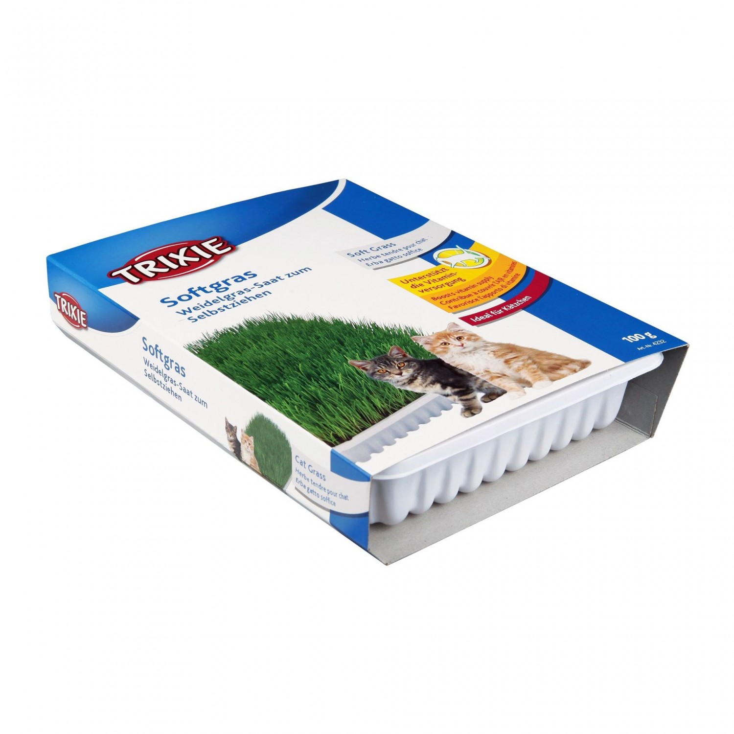 Насіння для вирощування. Трава сприяє підтримці чудового самопочуття Вашої кішки або кошеняти і природному виведенню шерсті із кишечнику, задовольняє потреби у зелені. Трава має особливо м’яку структуру, тому добре підходить кошенятам. Зберігати в сухому та прохолодному місці.